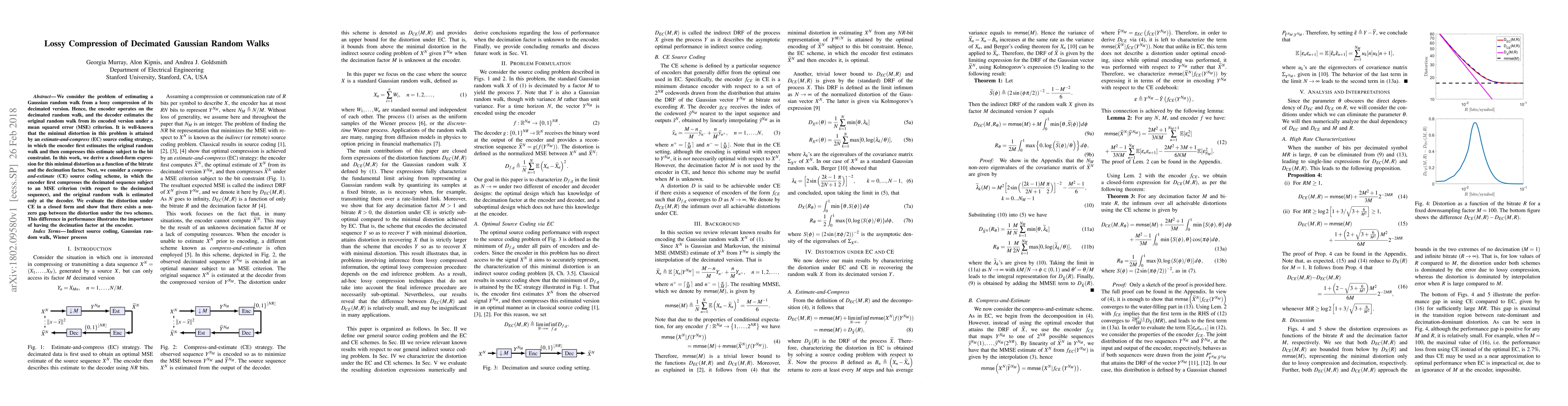 We consider the problem of estimating a Gaussian random walk from a lossy compression of its decimated version. Hence, the encoder operates on the decimated random walk, and the decoder estimates the original random walk from its encoded version under a mean squared error (MSE) criterion. It is well-known that the minimal distortion in this problem is attained by an estimate-and-compress (EC) source coding strategy, in which the encoder first estimates the original random walk and then compresses this estimate subject to the bit constraint. In this work, we derive a closed-form expression for this minimal distortion as a function of the bitrate and the decimation factor. Next, we consider a compress-and-estimate (CE) source coding scheme, in which the encoder first compresses the decimated sequence subject to an MSE criterion (with respect to the decimated sequence), and the original random walk is estimated only at the decoder. We evaluate the distortion under CE in a closed form and show that there exists a nonzero gap between the distortion under the two schemes. This difference in performance illustrates the importance of having the decimation factor at the encoder.