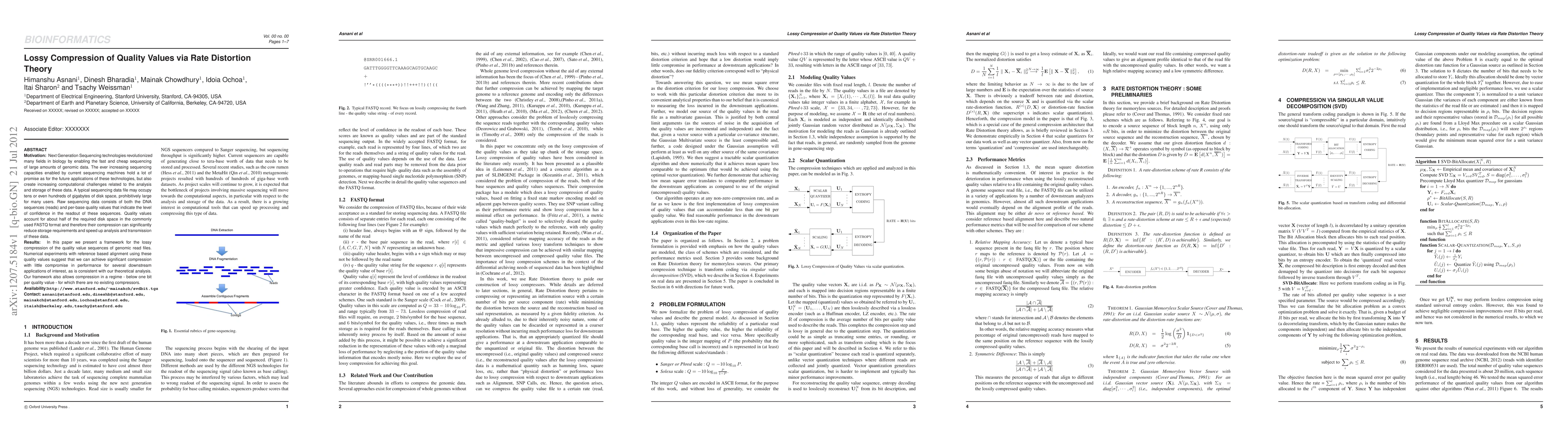 Researchers developed a framework for compressing quality values in genomic sequencing data, reducing storage requirements and speeding up analysis, with significant compression possible even below one bit per value.