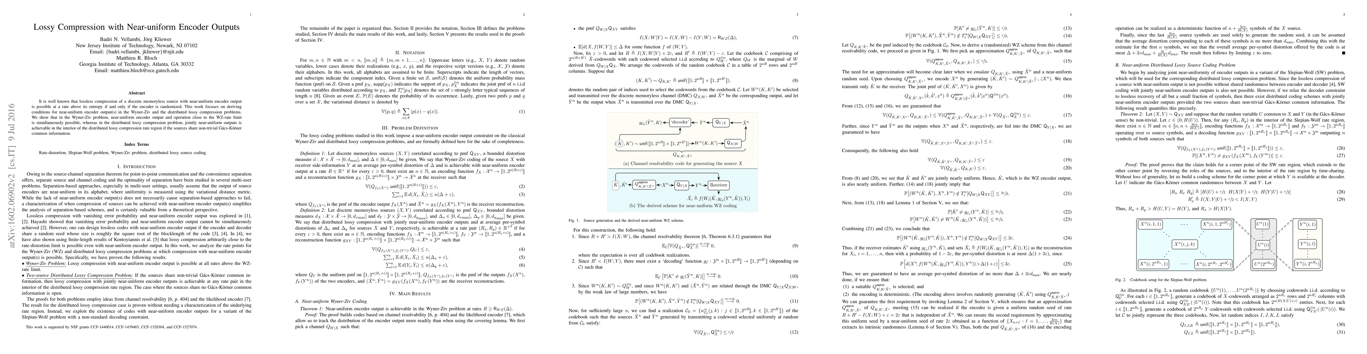 The paper presents conditions and a theorem for achieving near-uniform encoder outputs in lossy compression problems, specifically in Wyner-Ziv and distributed lossy source coding scenarios.