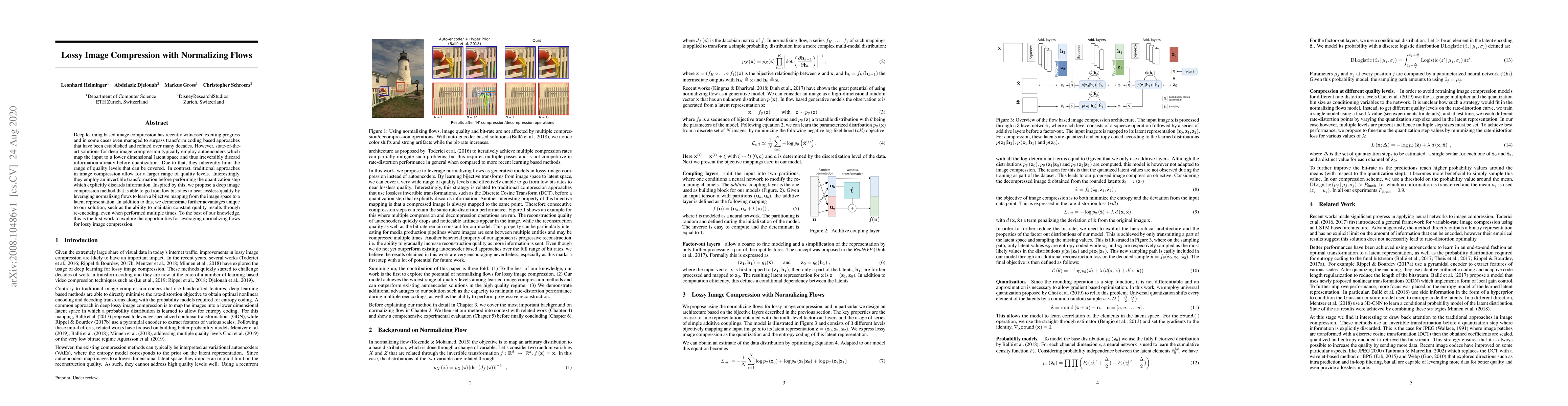 This paper proposes a novel deep image compression method using normalizing flows to create a bijective mapping from image to latent space, enabling a wide range of quality levels from low bit-rates to near lossless quality. Unlike autoencoders, this approach allows for reversible information transformation and maintains constant quality through multiple re-encodings.