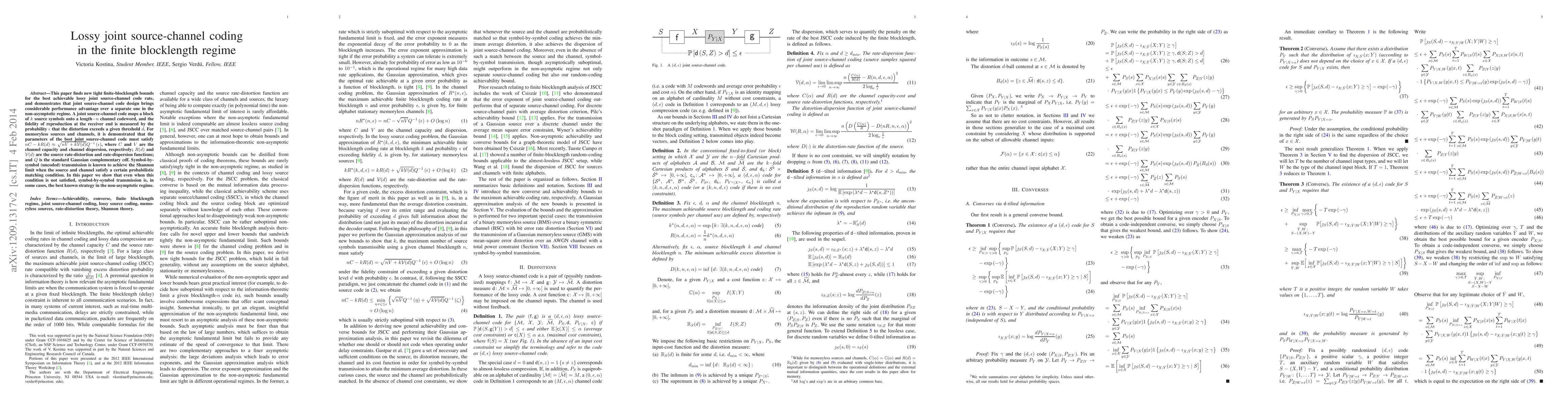 This paper establishes tight finite-blocklength bounds for lossy joint source-channel coding, showing that joint source-channel coding outperforms separate coding in the non-asymptotic regime. It reveals that symbol-by-symbol transmission can be optimal even when the probabilistic matching condition is not met.