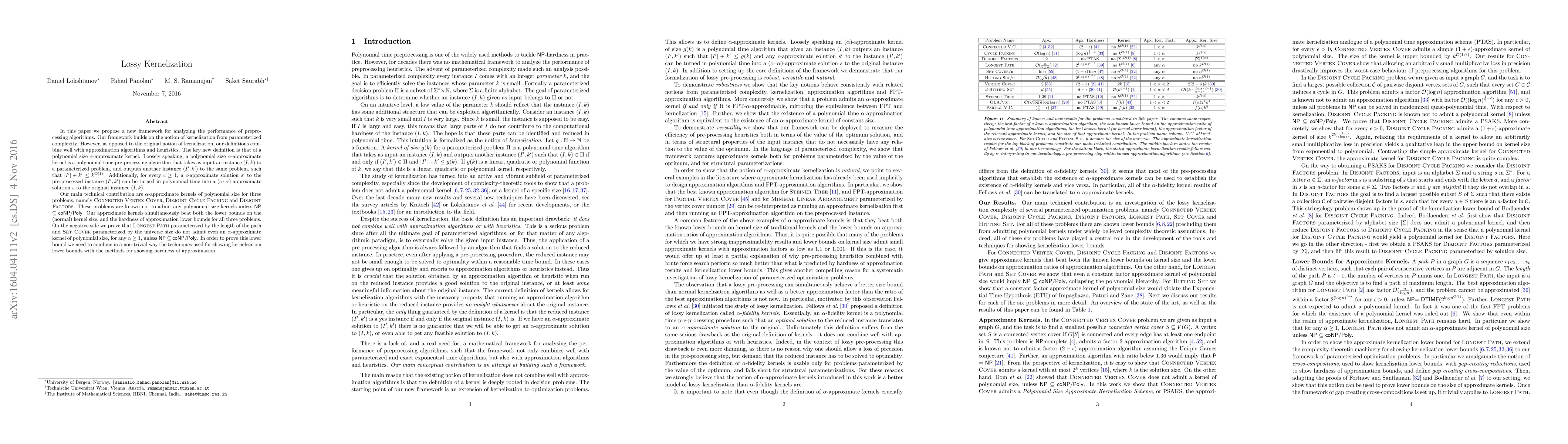 Saket Saurabh, Daniel Lokshtanov, Meirav Zehavi et al.