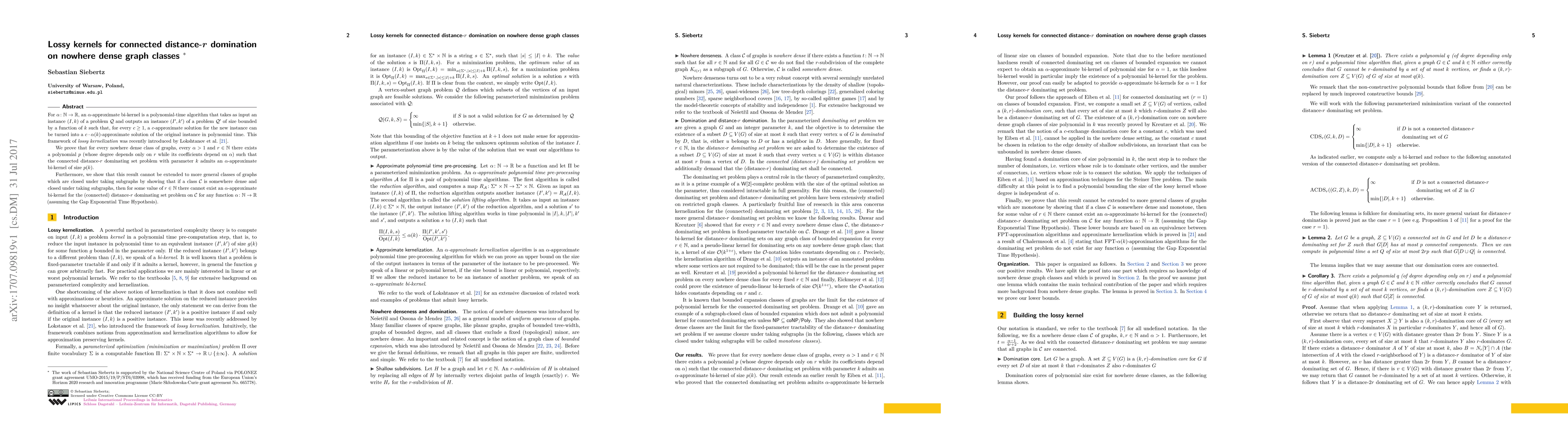 For $\alpha\colon\mathbb{N}\rightarrow\mathbb{R}$, an $\alpha$-approximate bi-kernel is a polynomial-time algorithm that takes as input an instance $(I, k)$ of a problem $Q$ and outputs an instance $(I',k')$ of a problem $Q'$ of size bounded by a function of $k$ such that, for every $c\geq 1$, a $c$-approximate solution for the new instance can be turned into a $c\cdot\alpha(k)$-approximate solution of the original instance in polynomial time. This framework of \emph{lossy kernelization} was recently introduced by Lokshtanov et al. We prove that for every nowhere dense class of graphs, every $\alpha>1$ and $r\in\mathbb{N}$ there exists a polynomial $p$ (whose degree depends only on $r$ while its coefficients depend on $\alpha$) such that the connected distance-$r$ dominating set problem with parameter $k$ admits an $\alpha$-approximate bi-kernel of size $p(k)$. Furthermore, we show that this result cannot be extended to more general classes of graphs which are closed under taking subgraphs by showing that if a class $C$ is somewhere dense and closed under taking subgraphs, then for some value of $r\in\mathbb{N}$ there cannot exist an $\alpha$-approximate bi-kernel for the (connected) distance-$r$ dominating set problem on $C$ for any function $\alpha\colon\mathbb{N}\rightarrow\mathbb{R}$ (assuming the Gap Exponential Time Hypothesis).