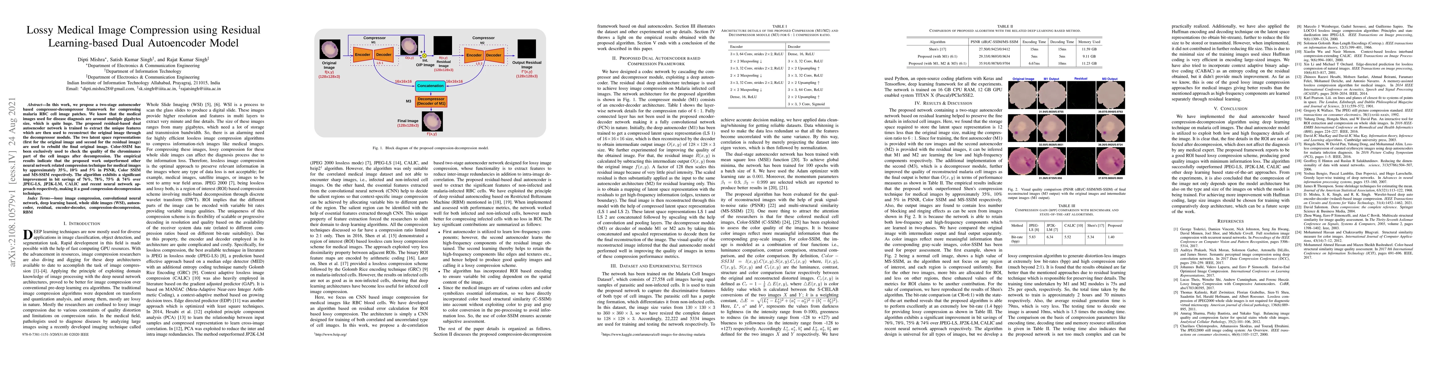 The paper proposes a residual-based dual autoencoder model for compressing malaria RBC cell images, achieving superior performance over existing techniques by improving PSNR, Color SSIM, and MS-SSIM metrics, and significantly reducing file size by up to 78%.