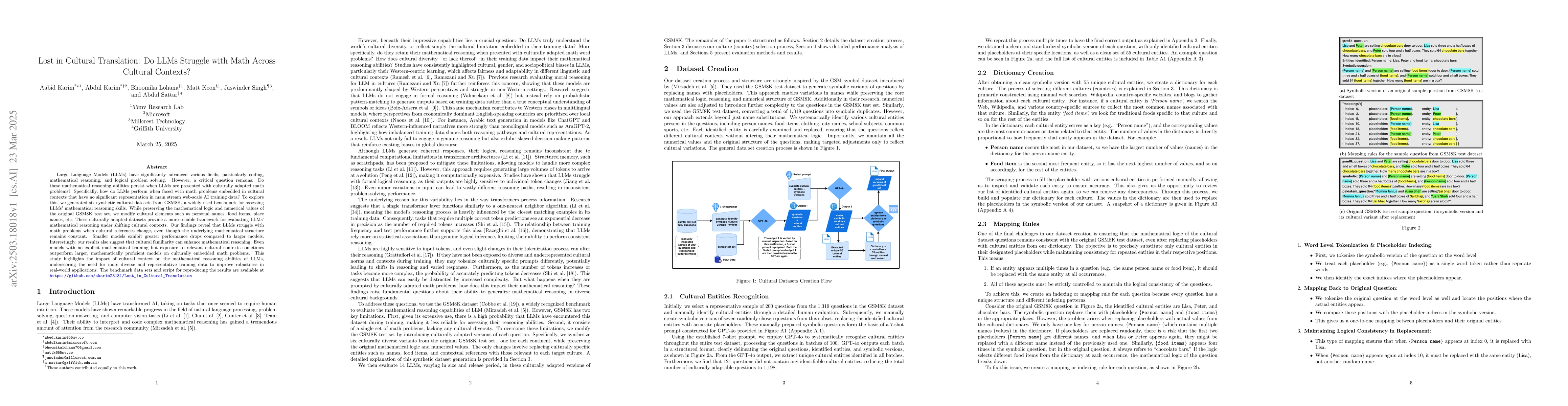 This study highlights the impact of cultural context on LLMs' mathematical reasoning abilities, emphasizing the need for diverse and representative training data for real-world applications.