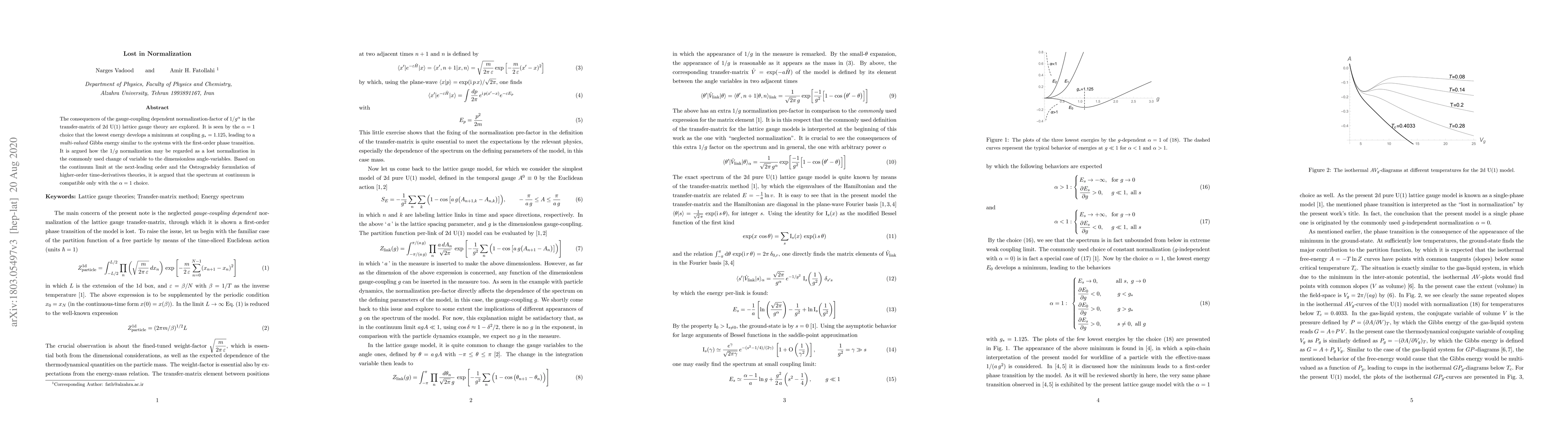 The consequences of the gauge-coupling dependent normalization-factor of $1/g^{\alpha}$ in the transfer-matrix of 2d U(1) lattice gauge theory are explored. It is seen by the $\alpha=1$ choice that the lowest energy develops a minimum at coupling $g_*=1.125$, leading to a \textit{multi-valued} Gibbs energy similar to the systems with the first-order phase transition. It is argued how the $1/g$ normalization may be regarded as a lost normalization in the commonly used change of variable to the dimensionless angle-variables. Based on the continuum limit at the next-leading order and the Ostrogradsky formulation of higher-order time-derivatives theories, it is argued that the spectrum at continuum is compatible only with the $\alpha=1$ choice.