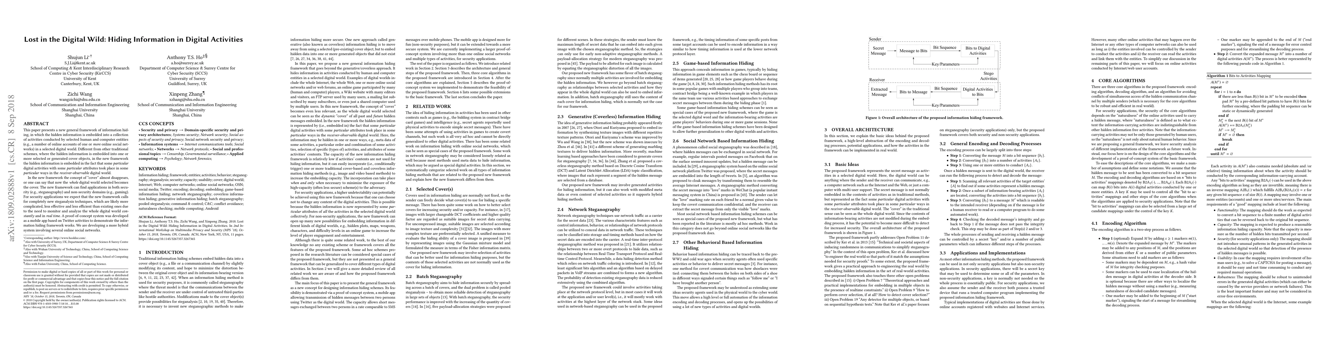 This paper introduces a novel framework for information hiding by embedding data within specific digital activities across selected online accounts, rather than traditional cover objects. The approach leverages the entire digital world as the cover, promising applications in both security and non-security domains, though it may require new, more complex steganalysis techniques.