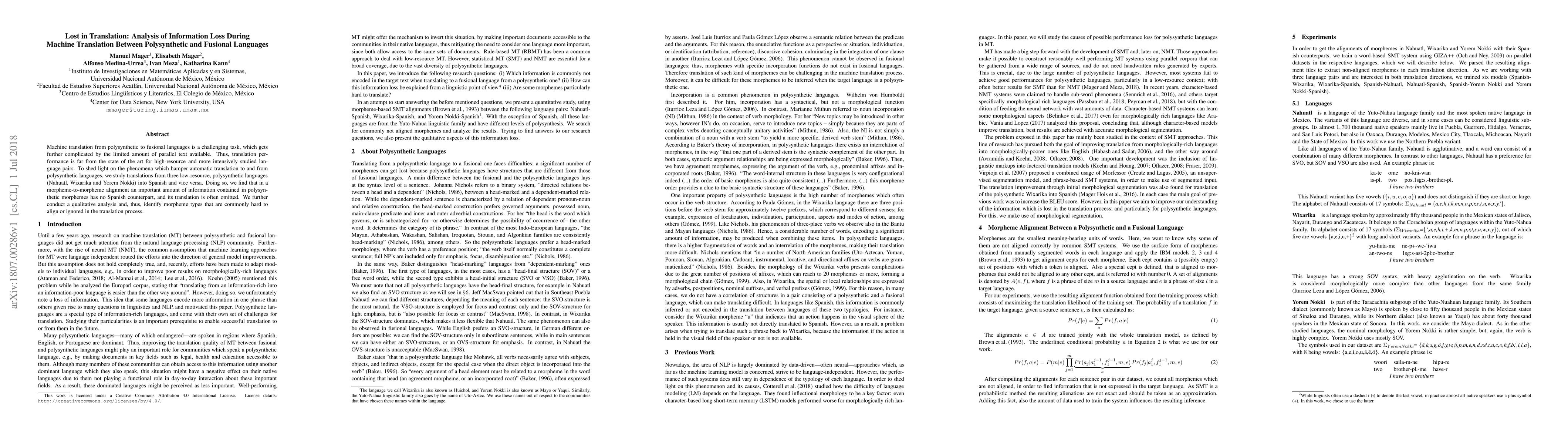 This paper investigates the challenges of machine translation between polysynthetic and fusional languages, focusing on information loss during translation from low-resource polysynthetic languages (Nahuatl, Wixarika, and Yorem Nokki) to Spanish and vice versa. It finds significant information loss due to the omission of polysynthetic morphemes without Spanish equivalents.