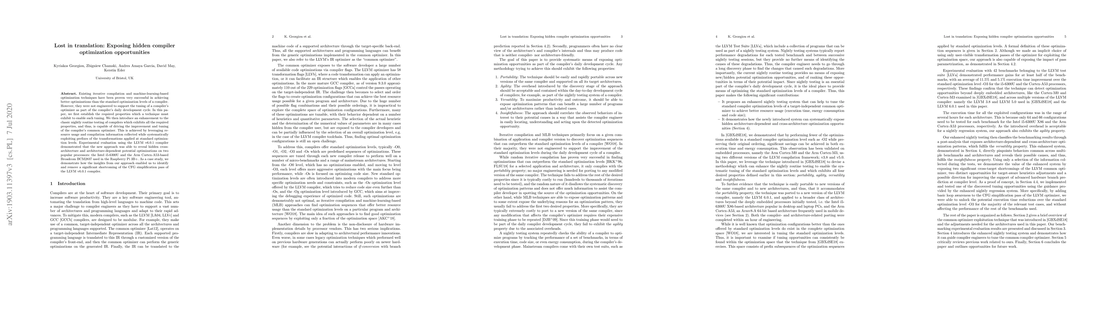 Researchers developed a new method to identify hidden compiler optimization opportunities, revealing cross-architecture and architecture-dependent potential optimizations on two popular processors, improving the performance of the LLVM v6.0.1 compiler.