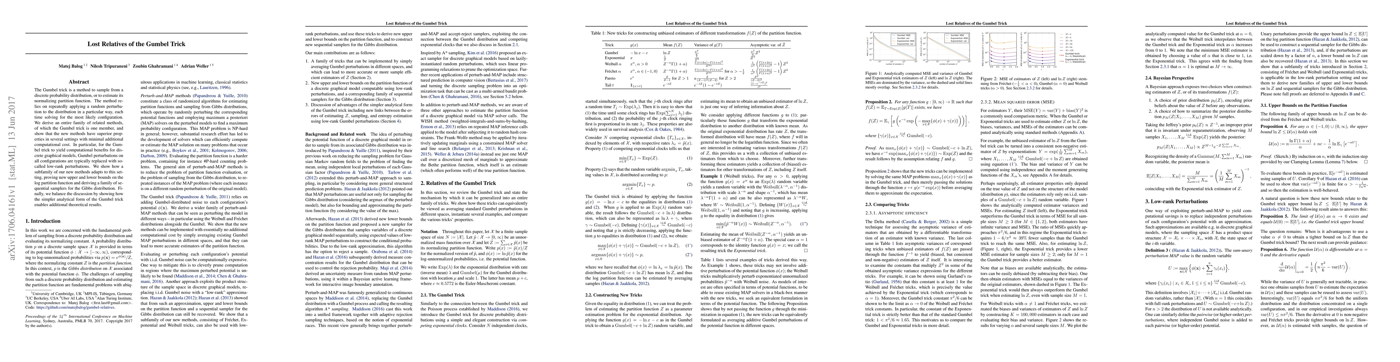 The Gumbel trick is a method to sample from a discrete probability distribution, or to estimate its normalizing partition function. The method relies on repeatedly applying a random perturbation to the distribution in a particular way, each time solving for the most likely configuration. We derive an entire family of related methods, of which the Gumbel trick is one member, and show that the new methods have superior properties in several settings with minimal additional computational cost. In particular, for the Gumbel trick to yield computational benefits for discrete graphical models, Gumbel perturbations on all configurations are typically replaced with so-called low-rank perturbations. We show how a subfamily of our new methods adapts to this setting, proving new upper and lower bounds on the log partition function and deriving a family of sequential samplers for the Gibbs distribution. Finally, we balance the discussion by showing how the simpler analytical form of the Gumbel trick enables additional theoretical results.