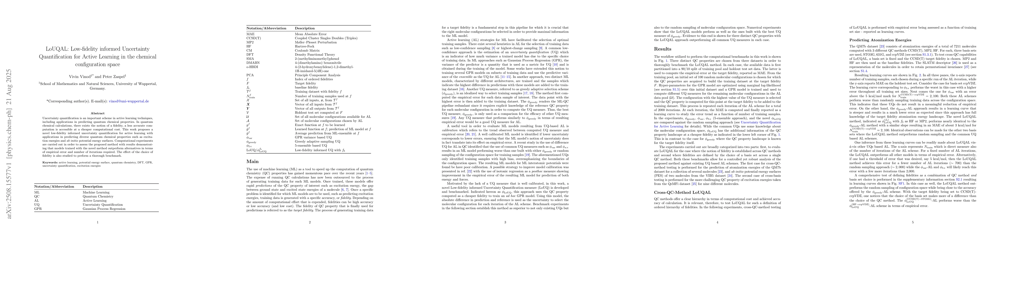 The paper presents LoUQAL, a novel active learning method that leverages low-fidelity computations to guide the selection of high-fidelity quantum chemical calculations, thereby optimizing resource usage.