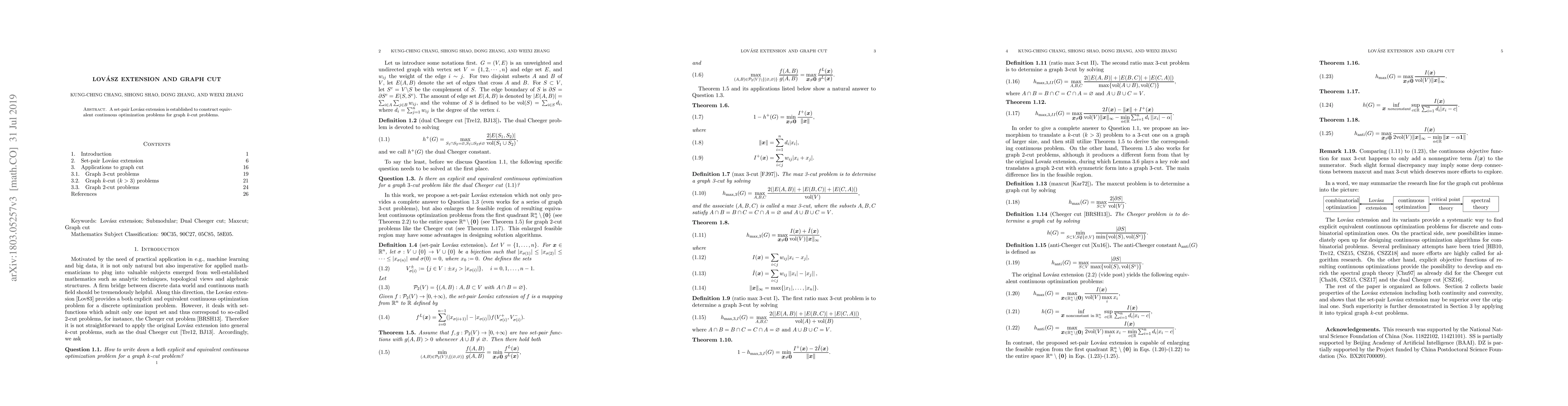 Summary: This paper introduces a set-pair Lovász extension method to create continuous optimization equivalents for graph k-cut problems, facilitating improved computational approaches.