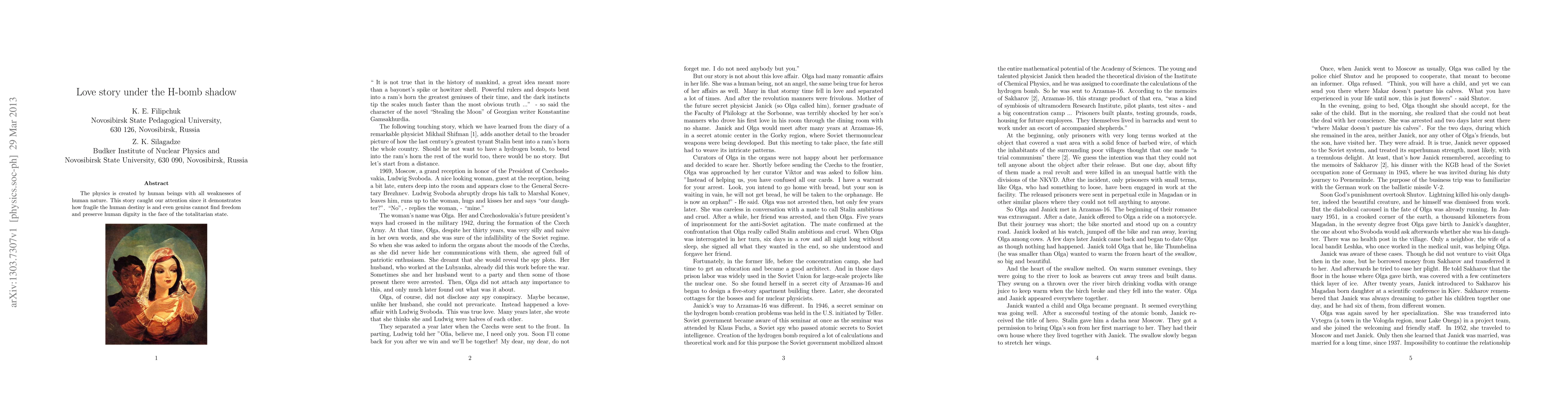 The physics is created by human beings with all weaknesses of human nature. This story caught our attention since it demonstrates how fragile the human destiny is and even genius cannot find freedom and preserve human dignity in the face of the totalitarian state.