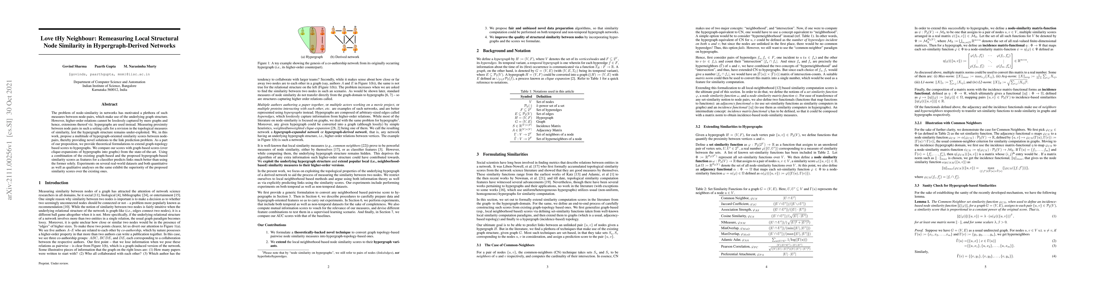 The problem of node-similarity in networks has motivated a plethora of such measures between node-pairs, which make use of the underlying graph structure. However, higher-order relations cannot be losslessly captured by mere graphs and hence, extensions thereof viz. hypergraphs are used instead. Measuring proximity between node pairs in such a setting calls for a revision in the topological measures of similarity, lest the hypergraph structure remains under-exploited. We, in this work, propose a multitude of hypergraph-oriented similarity scores between node-pairs, thereby providing novel solutions to the link prediction problem. As a part of our proposition, we provide theoretical formulations to extend graph-topology based scores to hypergraphs. We compare our scores with graph-based scores (over clique-expansions of hypergraphs into graphs) from the state-of-the-art. Using a combination of the existing graph-based and the proposed hypergraph-based similarity scores as features for a classifier predicts links much better than using the former solely. Experiments on several real-world datasets and both quantitative as well as qualitative analyses on the same exhibit the superiority of the proposed similarity scores over the existing ones.