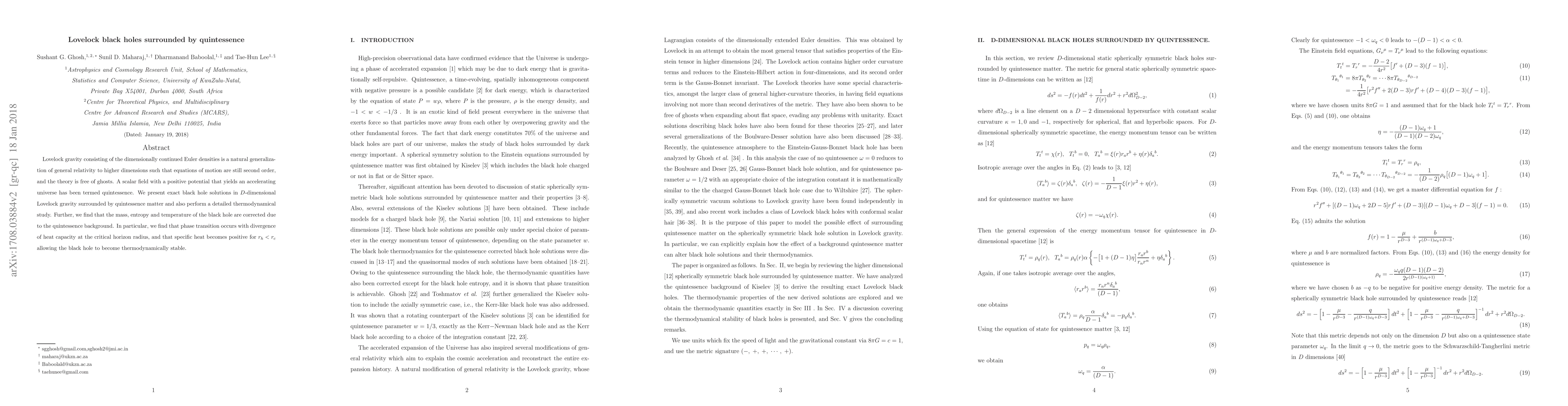 been termed quintessence. We present exact black hole solutions in