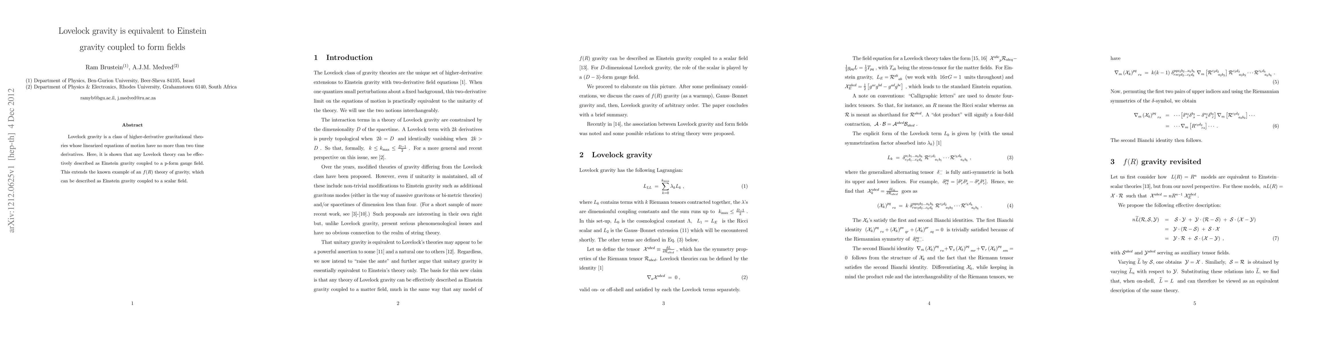 Lovelock gravity is a class of higher-derivative gravitational theories whose linearized equations of motion have no more than two time derivatives. Here, it is shown that any Lovelock theory can be effectively described as Einstein gravity coupled to a p-form gauge field. This extends the known example of an f(R) theory of gravity, which can be described as Einstein gravity coupled to a scalar field.