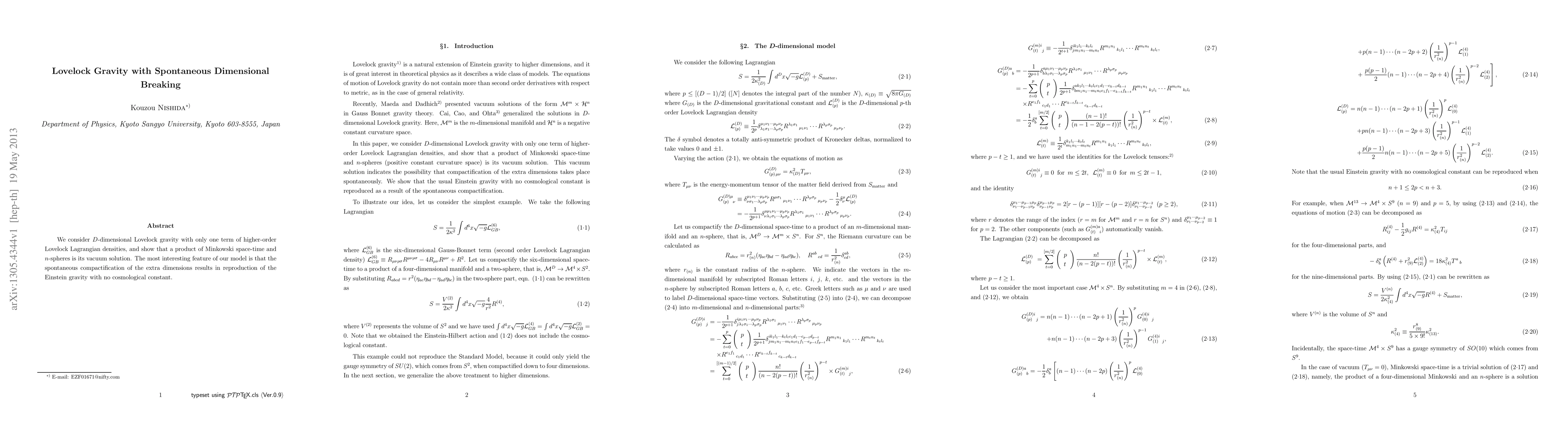 We consider D-dimensional Lovelock gravity with only one term of higher-order Lovelock Lagrangian densities, and show that a product of Minkowski space-time and n-spheres is its vacuum solution. The most interesting feature of our model is that the spontaneous compactification of the extra dimensions results in reproduction of the Einstein gravity with no cosmological constant.