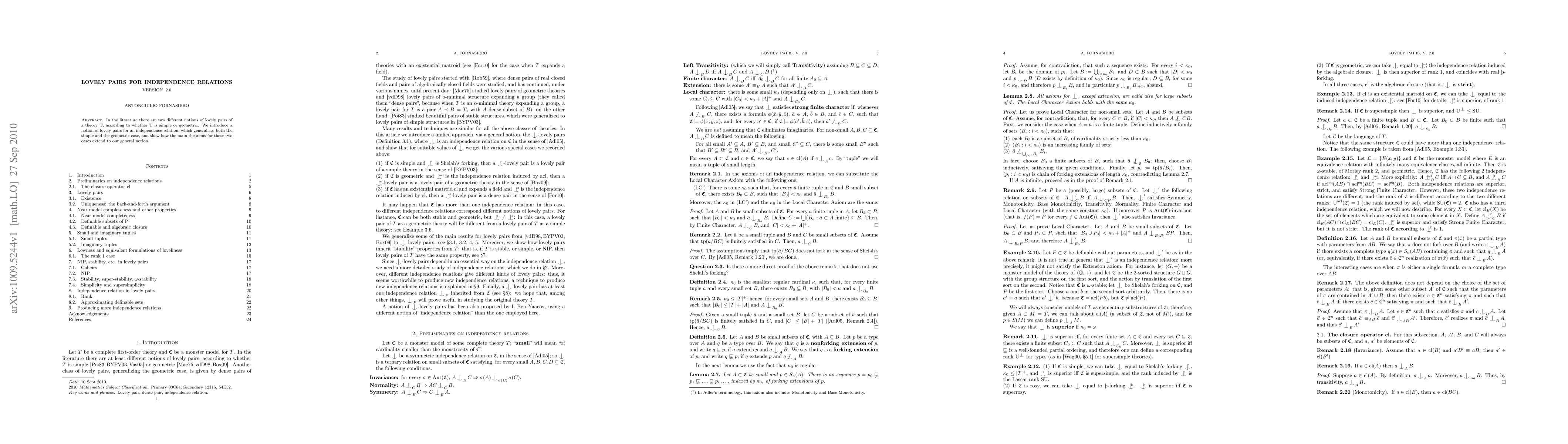 Researchers introduce a general notion of lovely pairs for independence relations that combines simple and geometric cases, extending previous findings to this new concept.