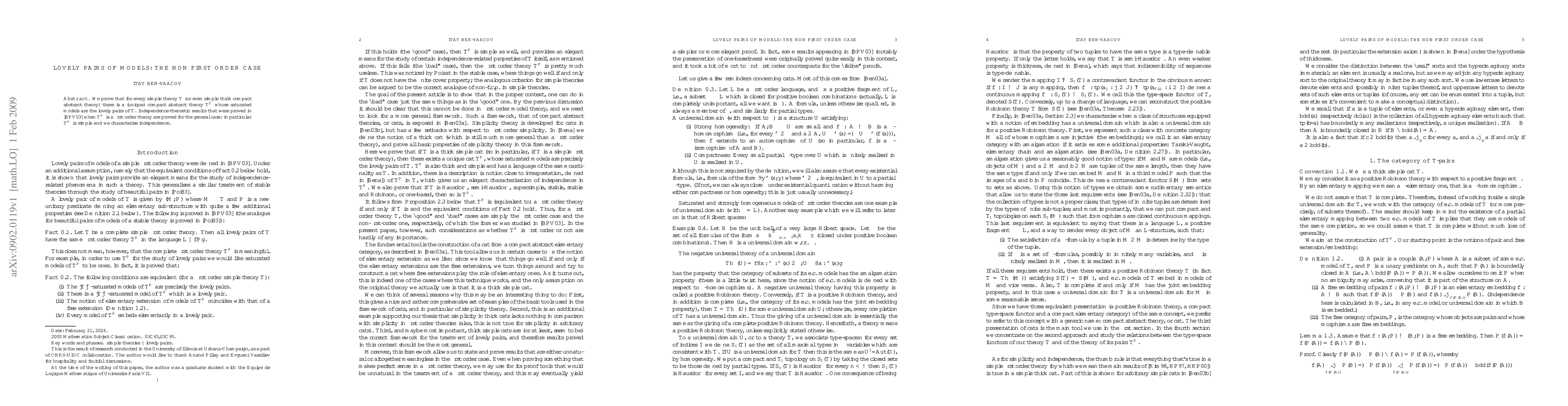 This research establishes that for any simple (or similar) abstract theory, there exists a unique associated theory whose models correspond to special pairs called 'lovely pairs.' It extends previous results to more general, non-first-order contexts, demonstrating that these theories remain simple and well-understood in terms of independence.