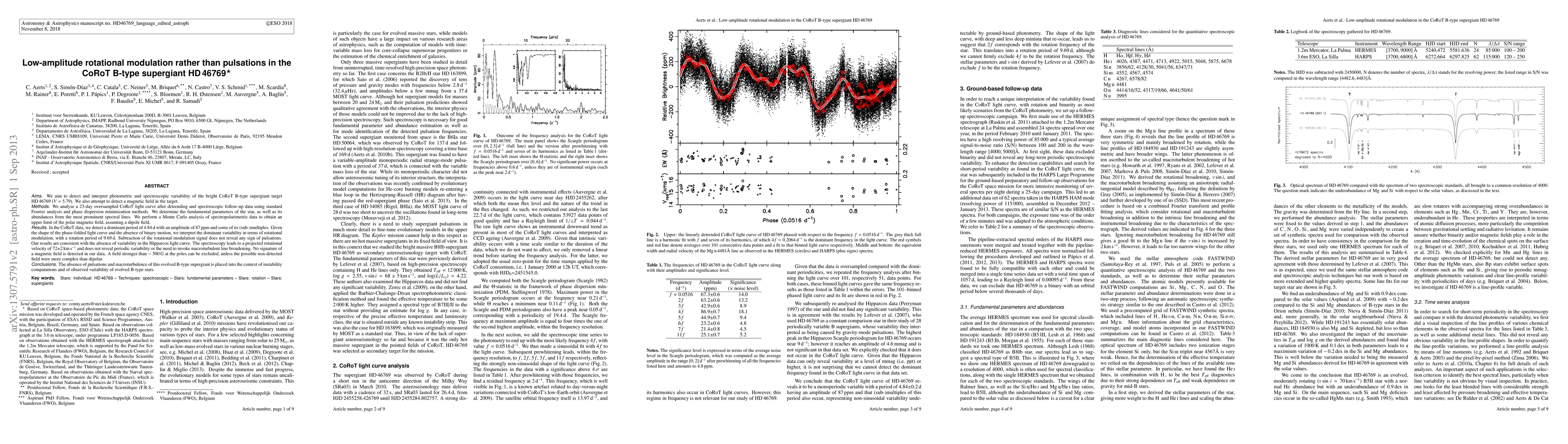 This paper investigates the variability of the B-type supergiant HD 46769 using CoRoT photometry and spectroscopy, finding low-amplitude rotational modulation rather than pulsations. No magnetic field was detected, and the star's rotational velocity was determined to be 72±2 km/s.