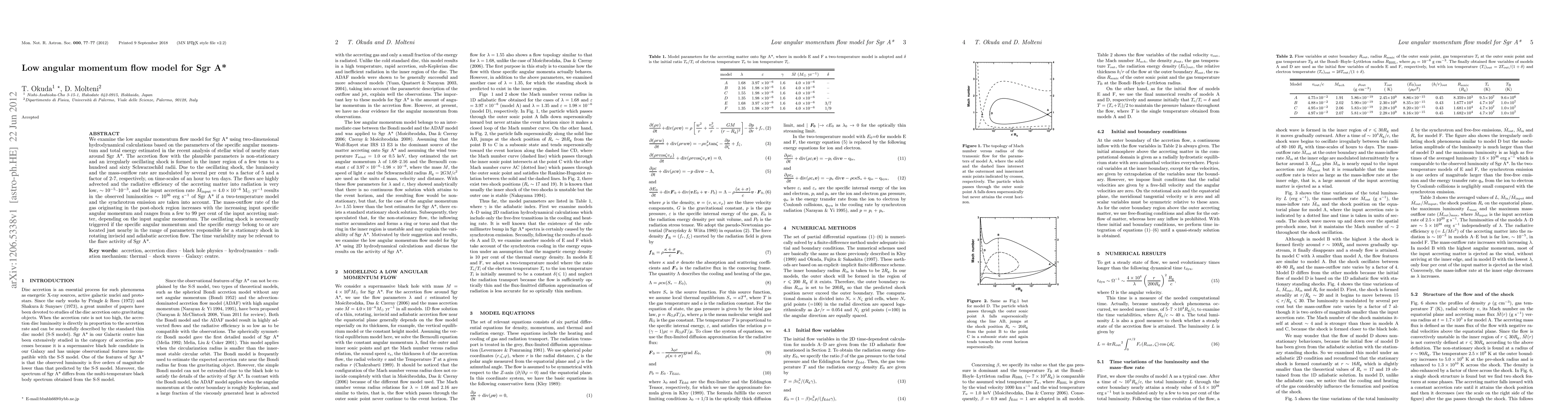 This paper investigates a low angular momentum flow model for Sgr A* using hydrodynamical simulations, revealing a non-stationary accretion flow with an irregularly oscillating shock. The luminosity and mass-outflow rate exhibit modulations, potentially linked to Sgr A*'s flare activity.