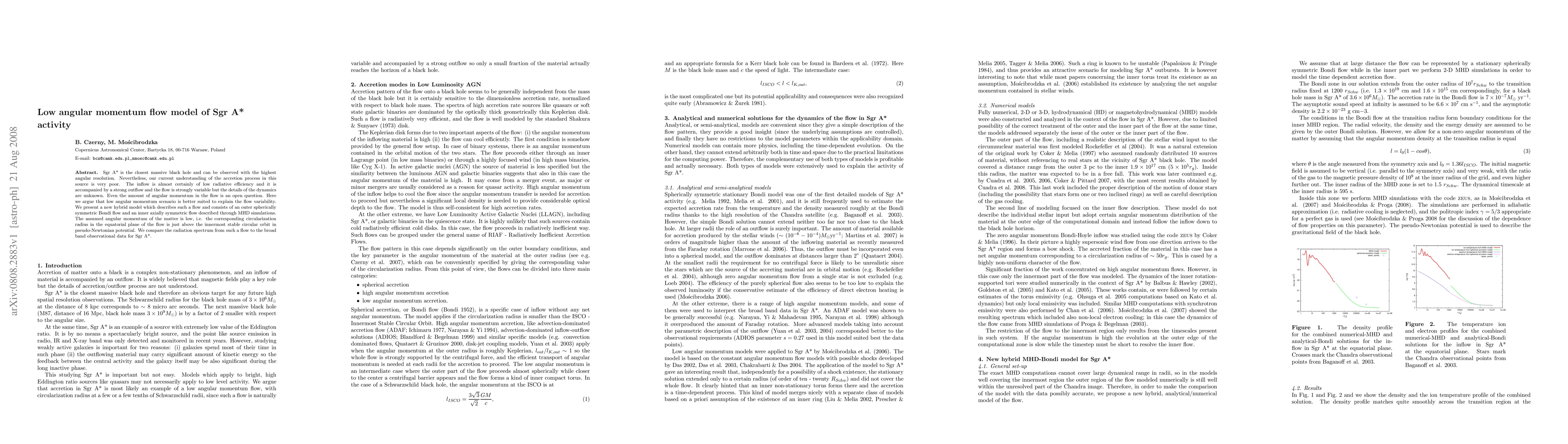 A new model proposes that low angular momentum flow is better suited to explain Sgr A* activity, with a hybrid model combining Bondi flow and MHD simulations.