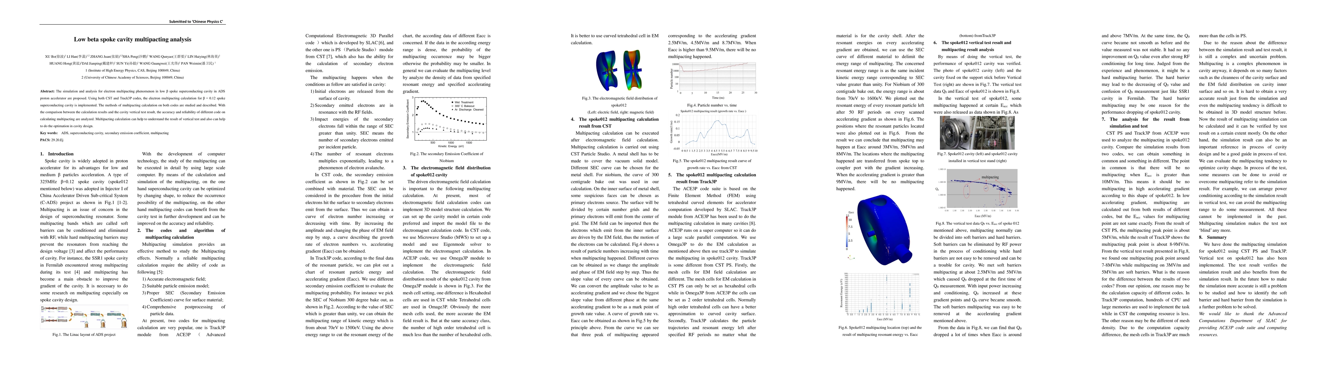 The study presents a comprehensive multipacting analysis using CST and Track3P codes, providing valuable insights into the behavior of low beta spoke cavities in the ADS proton accelerator.