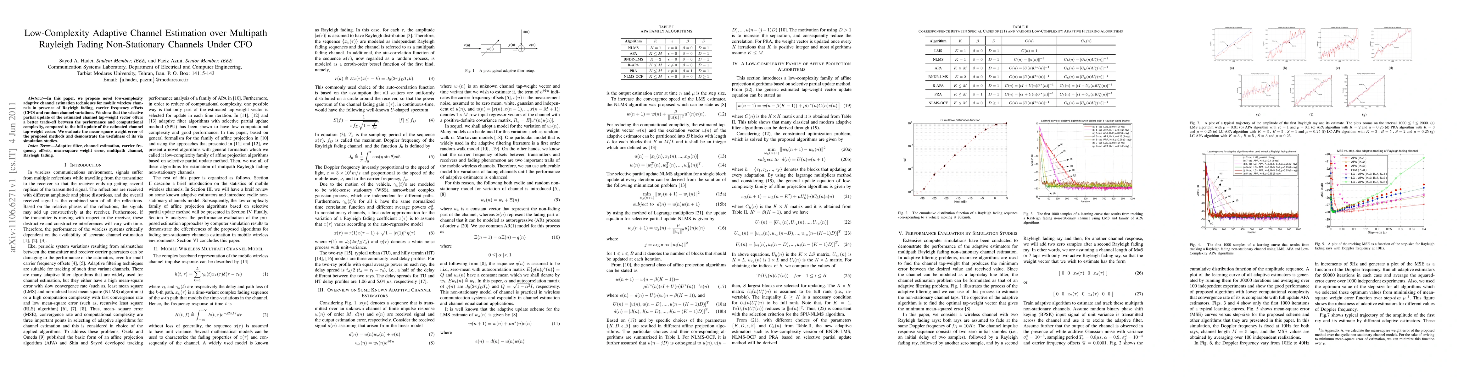 This paper introduces adaptive channel estimation techniques for mobile wireless channels experiencing Rayleigh fading, carrier frequency offsets, and random channel variations. The proposed selective partial update method balances performance and computational complexity better than full update methods, as demonstrated through mean-square weight error evaluation and simulation studies.