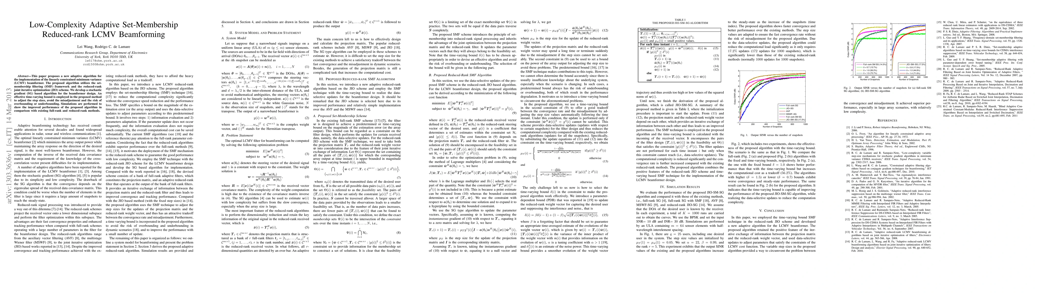 This paper introduces a low-complexity adaptive algorithm for LCMV beamforming using set-membership filtering and reduced-rank joint iterative optimization, with a stochastic gradient approach to adjust step sizes, demonstrating superior performance in simulations compared to existing methods.
