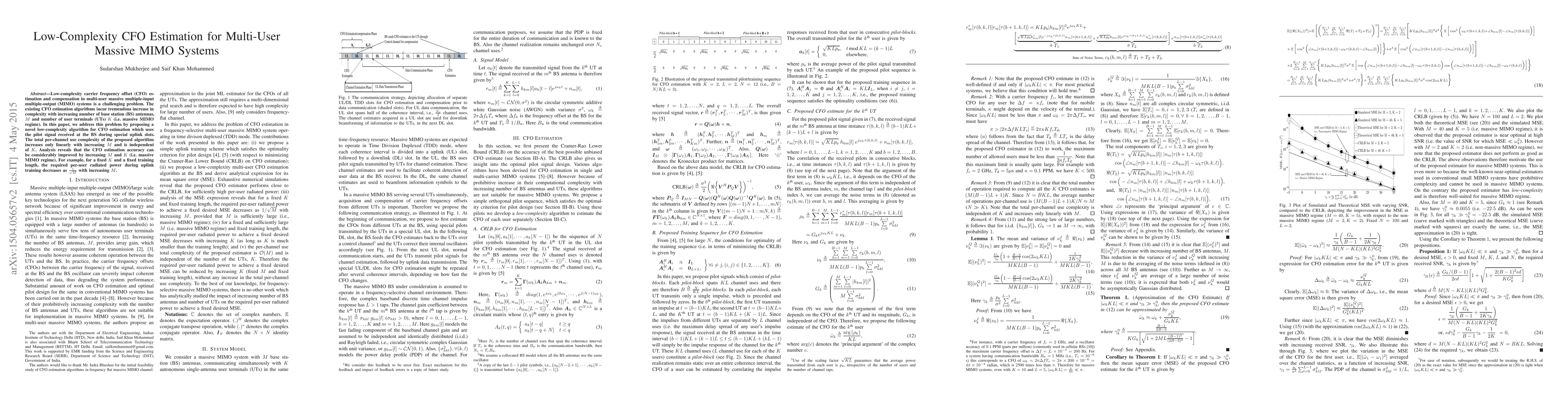 This paper proposes a novel low-complexity algorithm for carrier frequency offset (CFO) estimation in multi-user massive MIMO systems, which scales linearly with the number of base station antennas and is independent of the number of user terminals. The method leverages pilot signals during uplink slots, significantly improving CFO estimation accuracy in the massive MIMO regime.