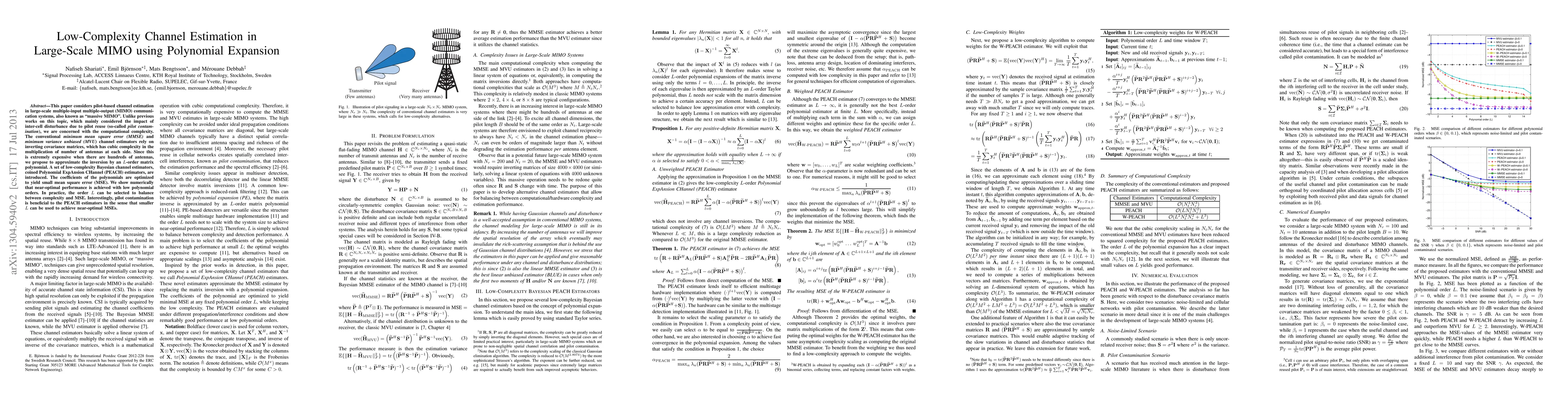 This paper proposes low-complexity channel estimators for large-scale MIMO systems using polynomial expansion to approximate matrix inversions, introducing PEACH estimators that balance complexity and performance. The results show near-optimal performance with low polynomial orders, and pilot contamination can actually aid in achieving better results.