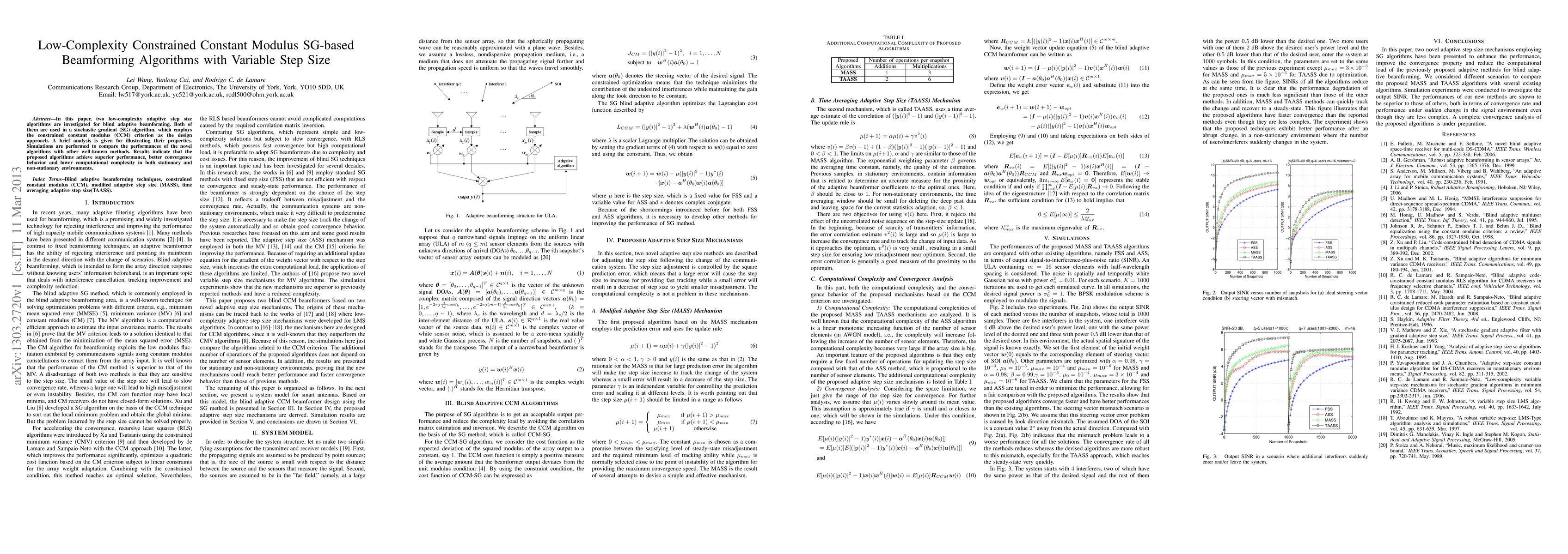 This paper proposes two low-complexity adaptive step size algorithms for stochastic gradient-based blind adaptive beamforming using a constrained constant modulus criterion. Simulation results show that the new algorithms outperform existing methods with superior performance, better convergence, and lower computational complexity.