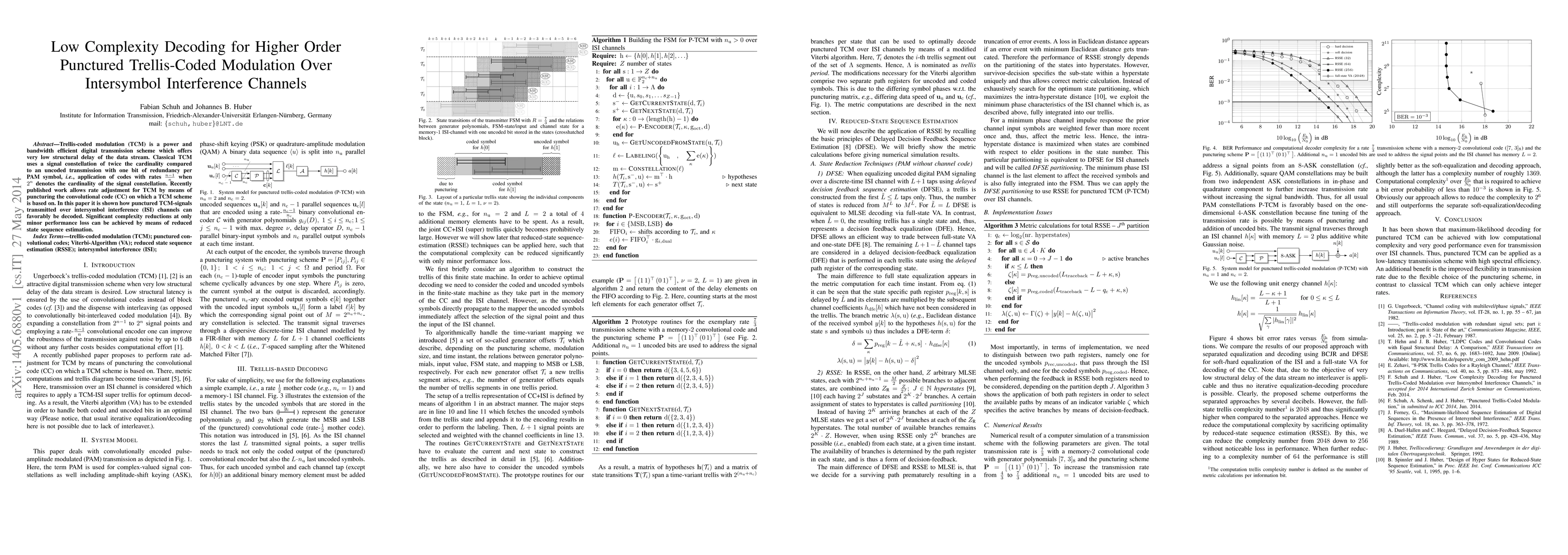 This paper explores low complexity decoding methods for higher order punctured trellis-coded modulation (TCM) over intersymbol interference channels, demonstrating that reduced state sequence estimation can achieve significant complexity reductions with only minor performance loss.