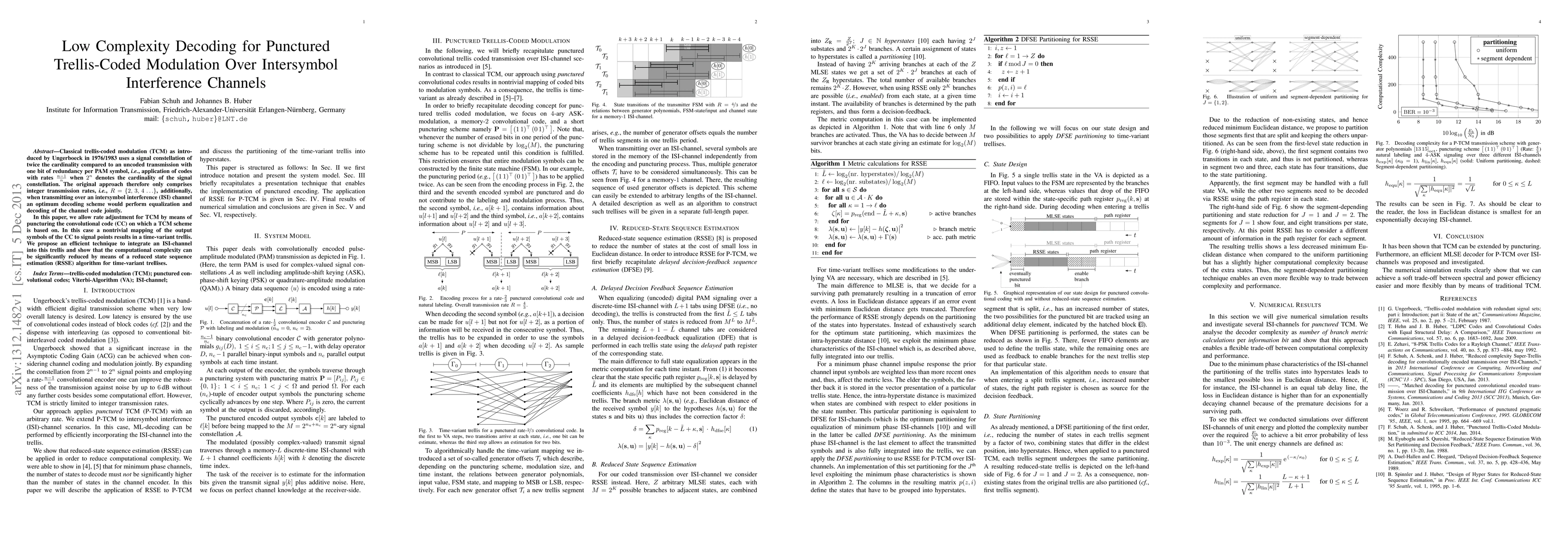 This paper proposes a low complexity decoding technique for punctured trellis-coded modulation (TCM) over intersymbol interference (ISI) channels. It introduces a reduced state sequence estimation (RSSE) algorithm for time-variant trellises, significantly reducing computational complexity compared to traditional methods.