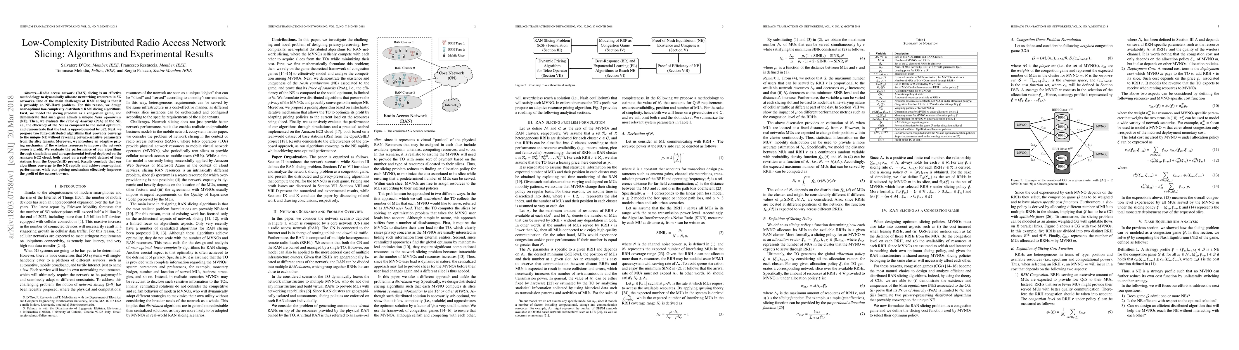 Radio access network (RAN) slicing is an effective methodology to dynamically allocate networking resources in 5G networks. One of the main challenges of RAN slicing is that it is provably an NP-Hard problem. For this reason, we design near-optimal low-complexity distributed RAN slicing algorithms. First, we model the slicing problem as a congestion game, and demonstrate that such game admits a unique Nash equilibrium (NE). Then, we evaluate the Price of Anarchy (PoA) of the NE, i.e., the efficiency of the NE as compared to the social optimum, and demonstrate that the PoA is upper-bounded by 3/2. Next, we propose two fully-distributed algorithms that provably converge to the unique NE without revealing privacy-sensitive parameters from the slice tenants. Moreover, we introduce an adaptive pricing mechanism of the wireless resources to improve the network owner's profit. We evaluate the performance of our algorithms through simulations and an experimental testbed deployed on the Amazon EC2 cloud, both based on a real-world dataset of base stations from the OpenCellID project. Results conclude that our algorithms converge to the NE rapidly and achieve near-optimal performance, while our pricing mechanism effectively improves the profit of the network owner.