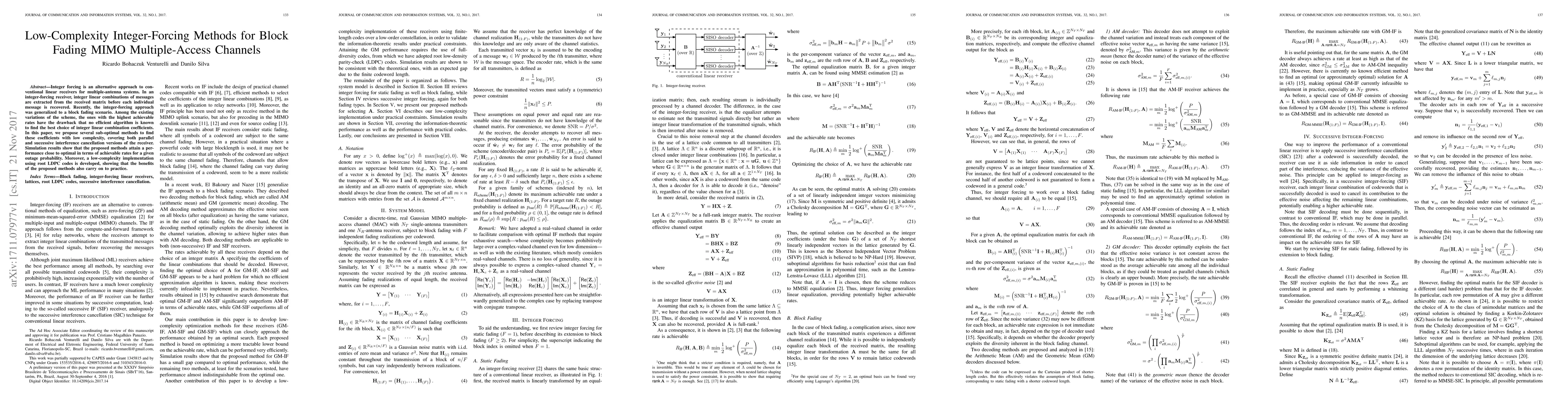 Researchers propose low-complexity integer-forcing methods for block fading MIMO multiple-access channels, achieving rates close to optimal with efficient algorithms. These methods offer a balance between performance and practical implementation.