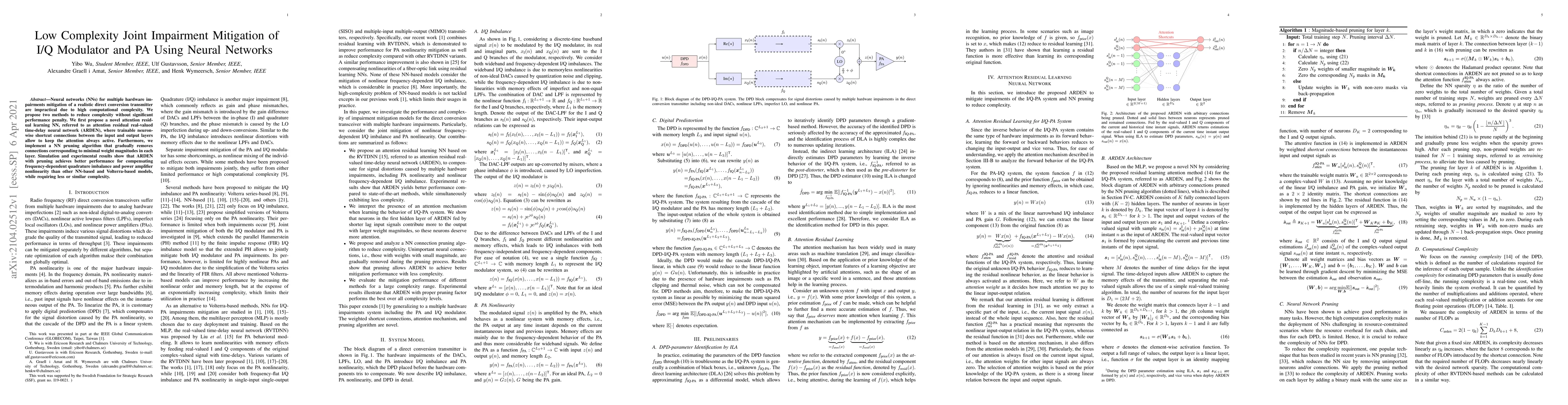Researchers propose two methods to reduce complexity in neural networks used for mitigating transmitter impairments, achieving better performance with reduced computational requirements.