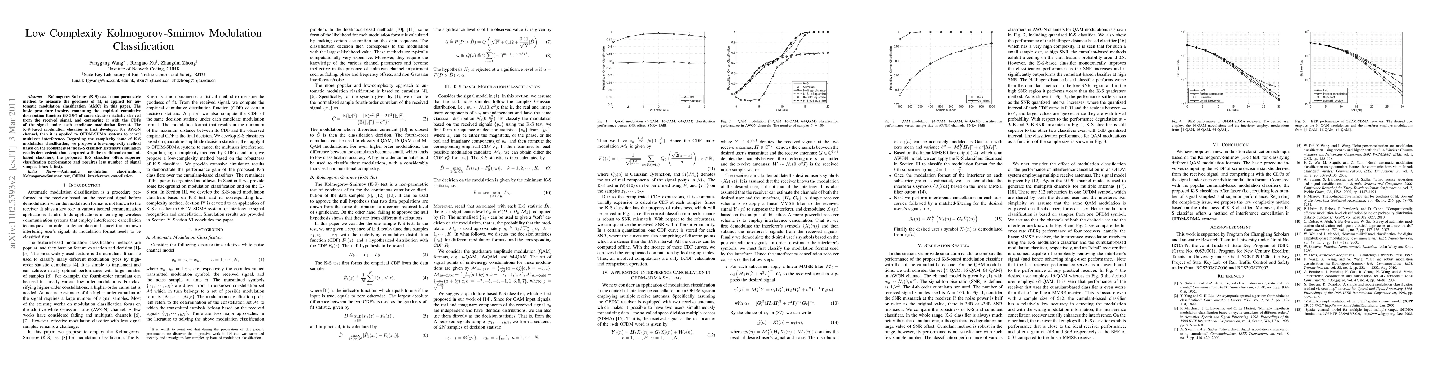 This paper proposes a low-complexity Kolmogorov-Smirnov (K-S) test-based modulation classification method for automatic modulation classification, demonstrating superior performance and faster operation compared to traditional cumulant-based classifiers, especially in OFDM-SDMA systems.