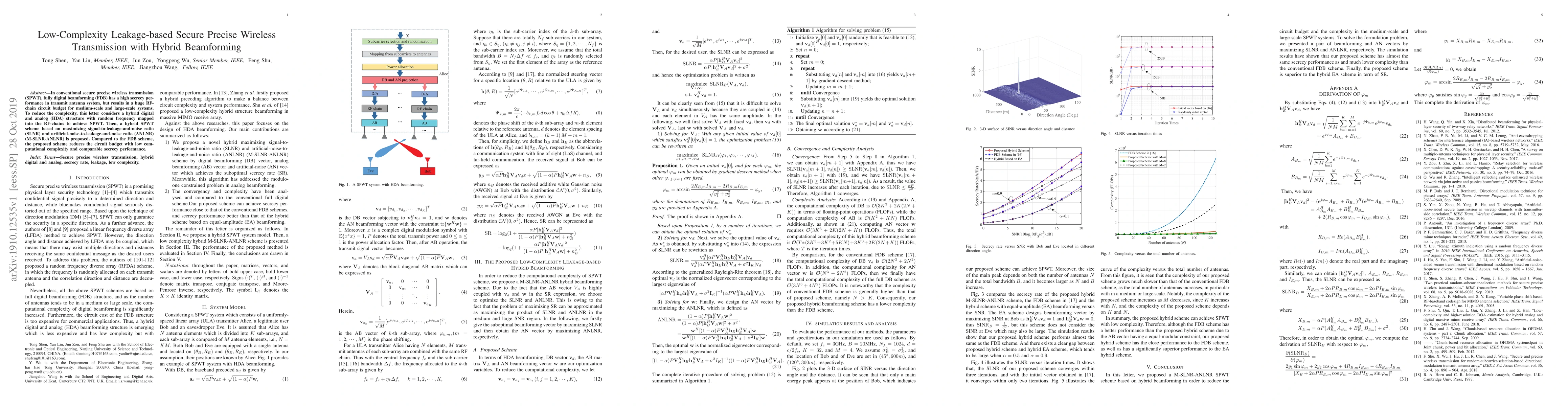 This paper proposes a hybrid digital and analog beamforming scheme to achieve secure precise wireless transmission (SPWT) with reduced complexity while maintaining comparable secrecy performance. The hybrid scheme maximizes signal-to-leakage-and-noise ratio and artificial-noise-to-leakage-and-noise ratio, significantly lowering the RF-chain circuit budget compared to fully digital beamforming.