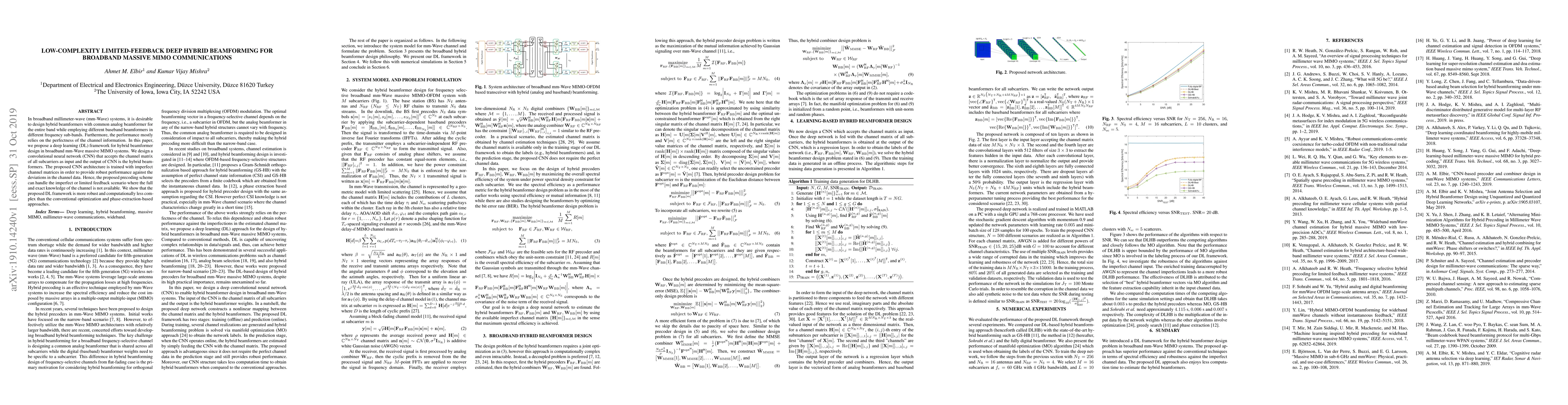 This paper proposes a deep learning framework using a convolutional neural network (CNN) for designing low-complexity hybrid beamformers in broadband millimeter-wave massive MIMO systems, enabling robust performance under imperfect channel information and limited feedback scenarios. The CNN is trained with imperfect channel matrices to achieve better robustness and lower computational complexity compared to traditional methods.