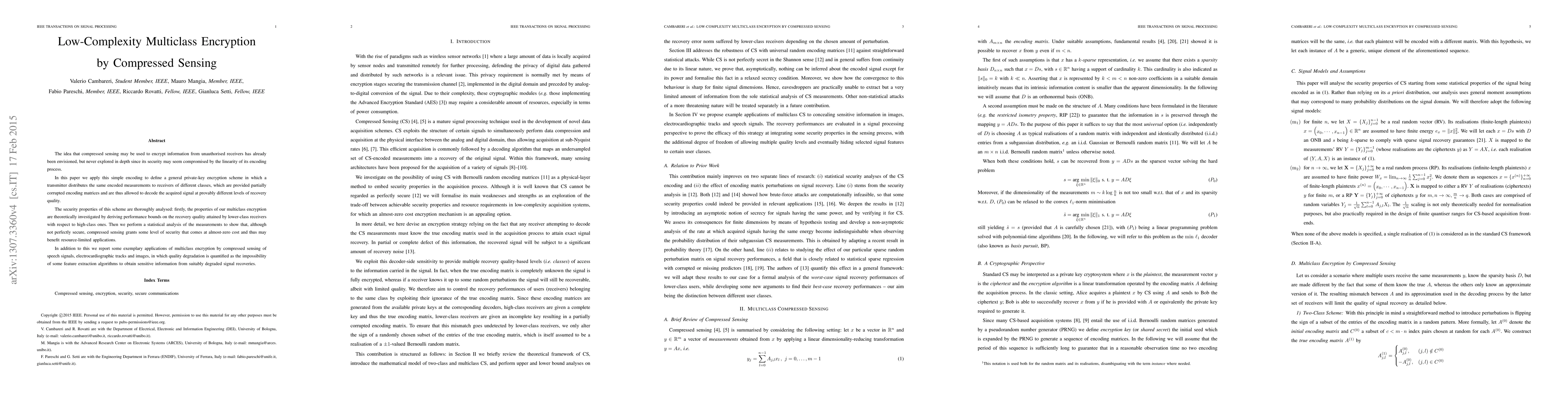 Researchers propose a low-complexity multiclass encryption scheme using compressed sensing, which provides provably different recovery quality for receivers of different classes. This approach grants some level of security at almost-zero cost, making it suitable for resource-limited applications.