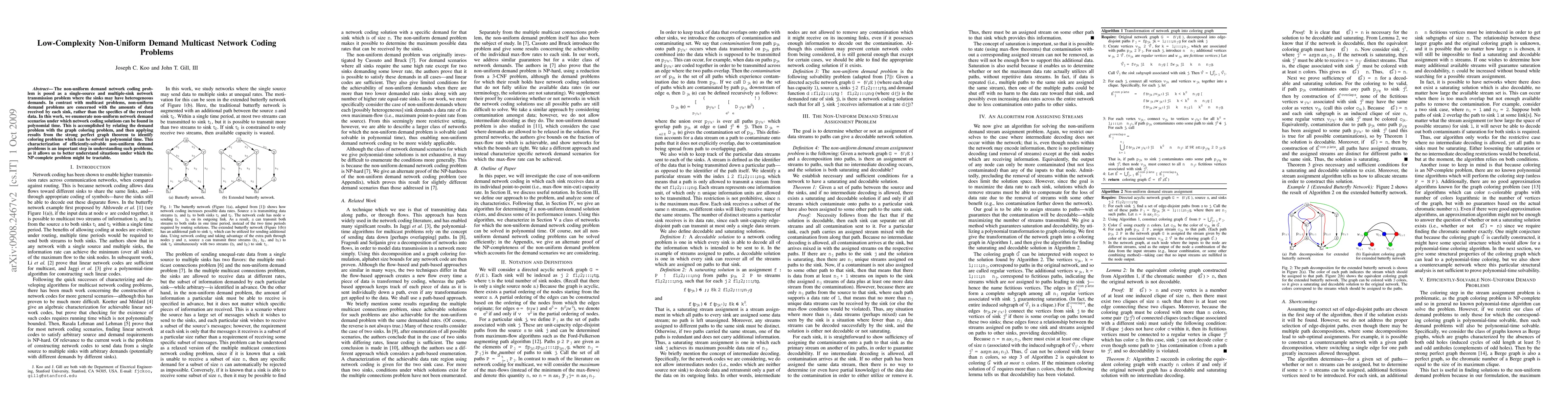 The non-uniform demand network coding problem is posed as a single-source and multiple-sink network transmission problem where the sinks may have heterogeneous demands. In contrast with multicast problems, non-uniform demand problems are concerned with the amounts of data received by each sink, rather than the specifics of the received data. In this work, we enumerate non-uniform network demand scenarios under which network coding solutions can be found in polynomial time. This is accomplished by relating the demand problem with the graph coloring problem, and then applying results from the strong perfect graph theorem to identify coloring problems which can be solved in polynomial time. This characterization of efficiently-solvable non-uniform demand problems is an important step in understanding such problems, as it allows us to better understand situations under which the NP-complete problem might be tractable.