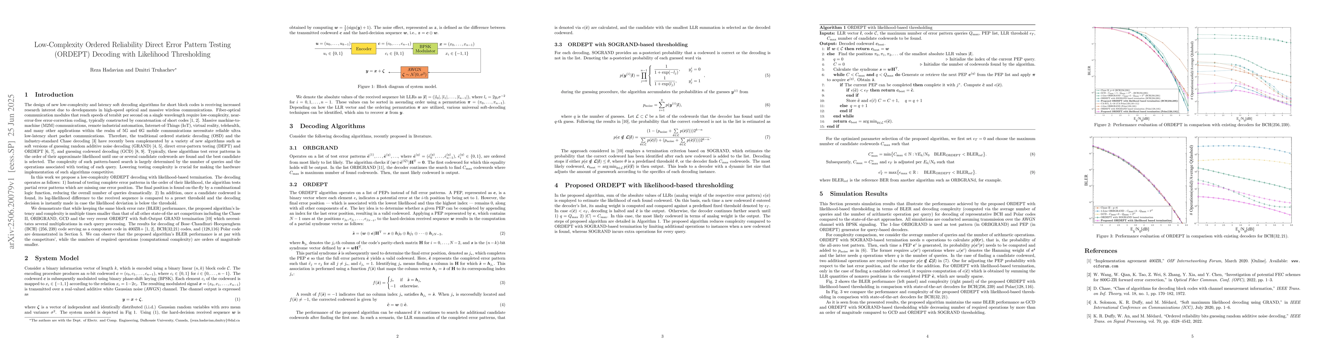 We propose a reduced complexity approach to pattern-based soft decoding of block codes. We start from the ORDEPT decoding algorithm which tests a list of partial error patterns organized in the order of their likelihood and attempts to complete the patterns creating candidate codewords. We then propose an early termination criterion. Once a candidate codeword is found, its log-likelihood difference to the received sequence is compared to a preset threshold and the decoding decision is instantly made in case the likelihood deviation is below the threshold. We demonstrate that while keeping the same block error rate (BLER) performance, the proposed algorithm's latency and complexity is multiple times smaller than that of the state-of-the art competitors including the Chase II, ORBGRAND, GCD, and the very recent ORDEPT with Soft-Output GRAND termination which necessitates several multiplications in each query processing.