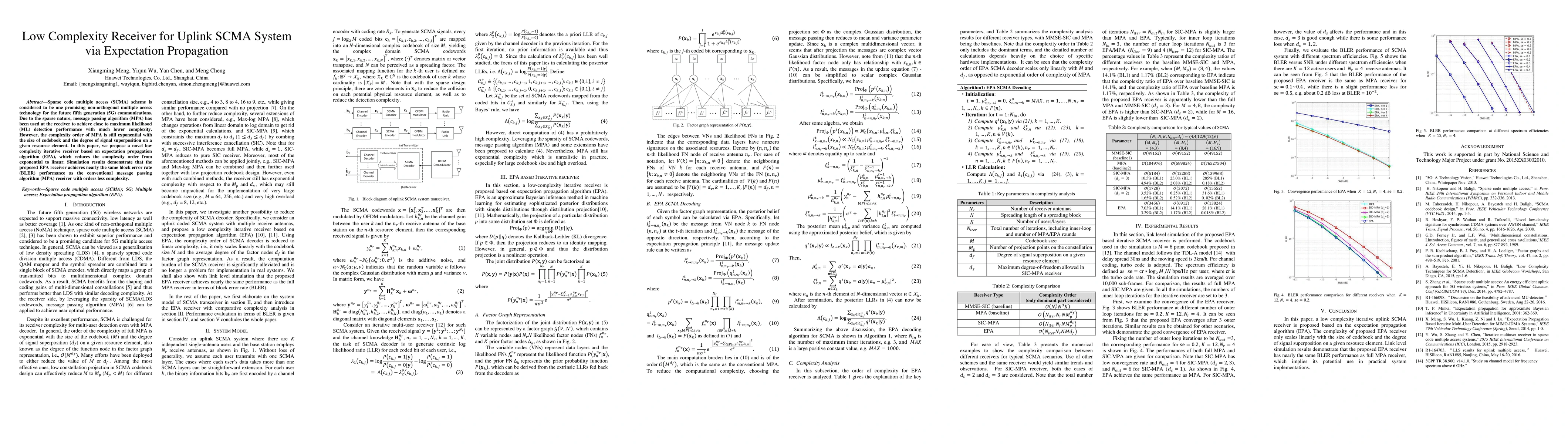 This paper proposes a low complexity receiver for uplink SCMA systems using expectation propagation (EPA) to reduce complexity from exponential to linear. The EPA receiver achieves similar performance to the conventional message passing algorithm (MPA) but with significantly lower computational complexity.