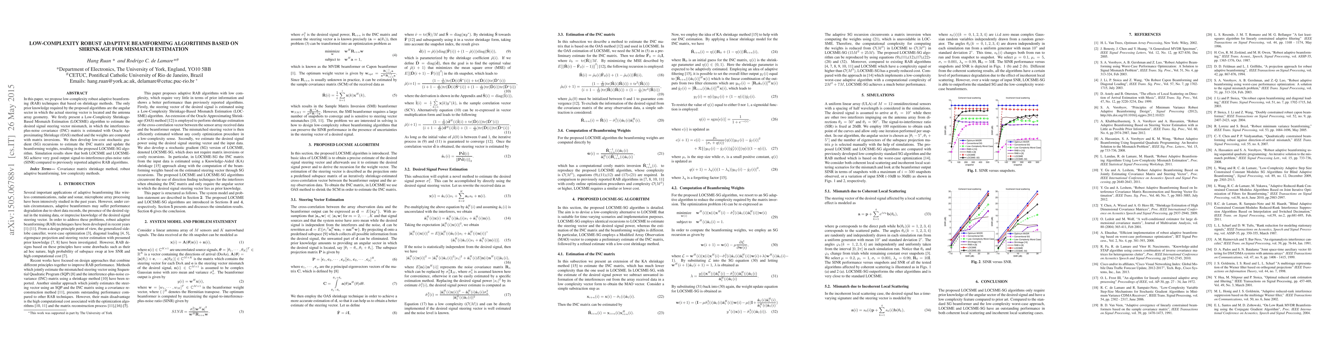 This paper proposes low-complexity robust adaptive beamforming algorithms based on shrinkage methods, with minimal prior knowledge requirements. The LOCSME algorithm estimates the desired signal steering vector mismatch, while the LOCSME-SG algorithm uses stochastic gradient recursions for adaptive weight updates, both achieving superior output SINR compared to existing methods.