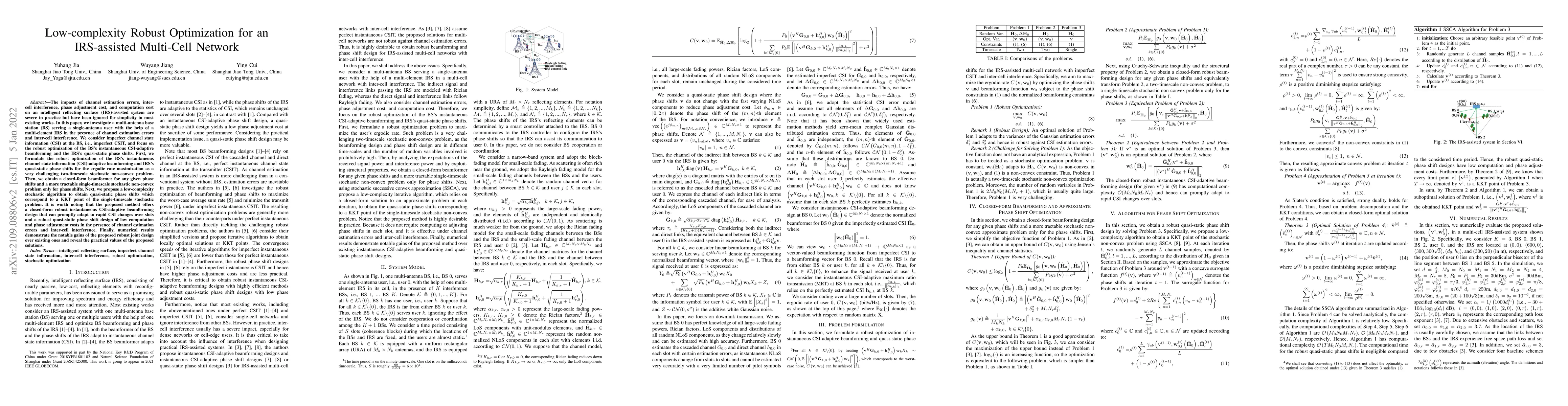 This paper investigates robust optimization for an IRS-assisted multi-cell network under channel estimation errors and inter-cell interference. It proposes a low-complexity algorithm for adaptive beamforming and phase shifts, achieving significant performance gains over existing methods.