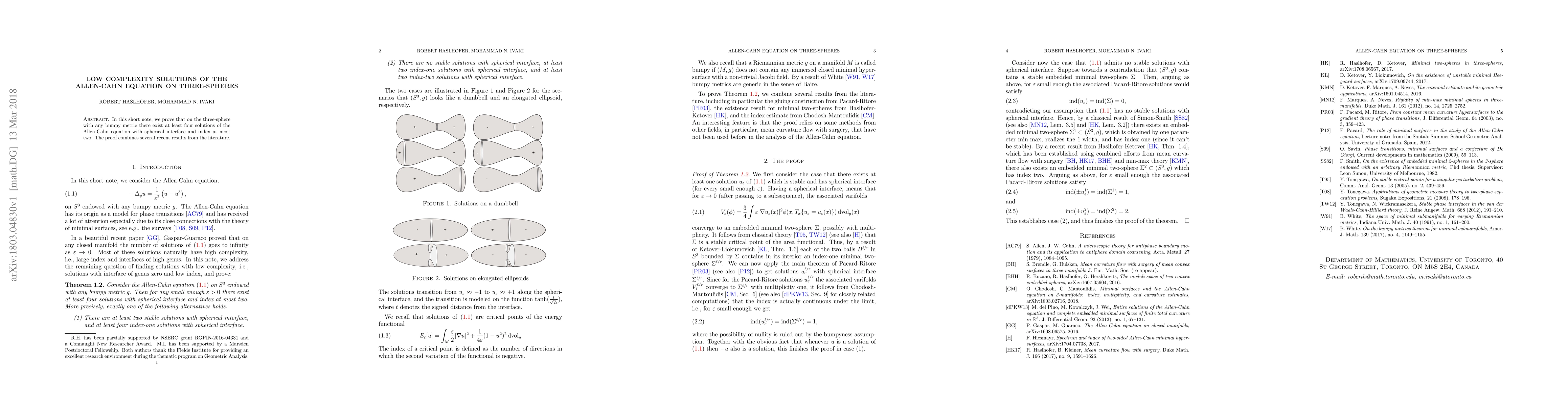 This paper demonstrates that on a three-sphere with a bumpy metric, there are at least four solutions to the Allen-Cahn equation characterized by spherical interfaces and an index of at most two. The proof integrates several recent findings from the field.