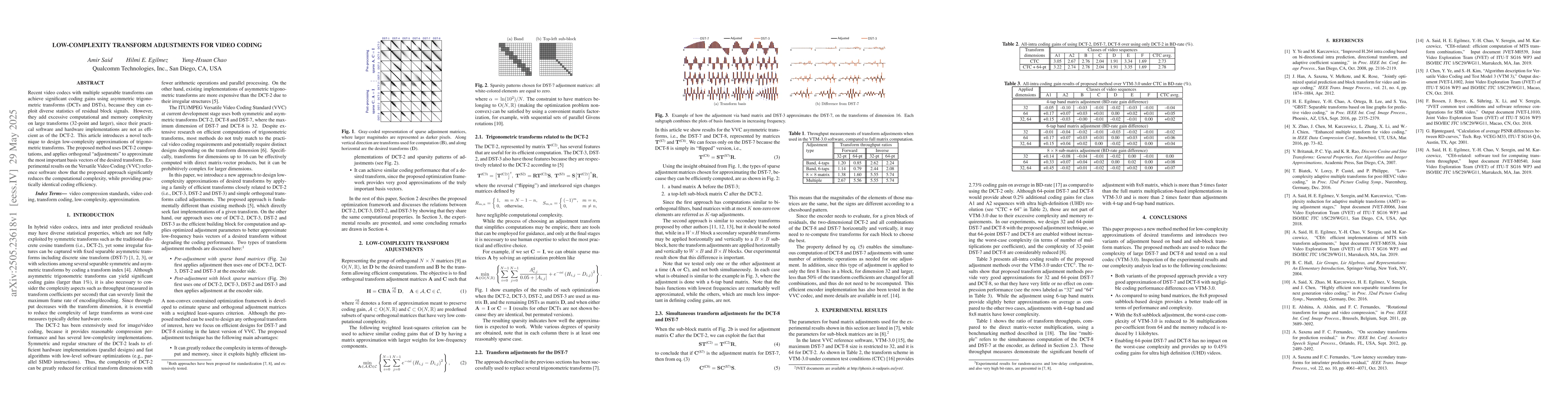 A new method reduces computational complexity in video coding by approximating key basis vectors of transforms using DCT-2 computations, while maintaining identical coding efficiency.