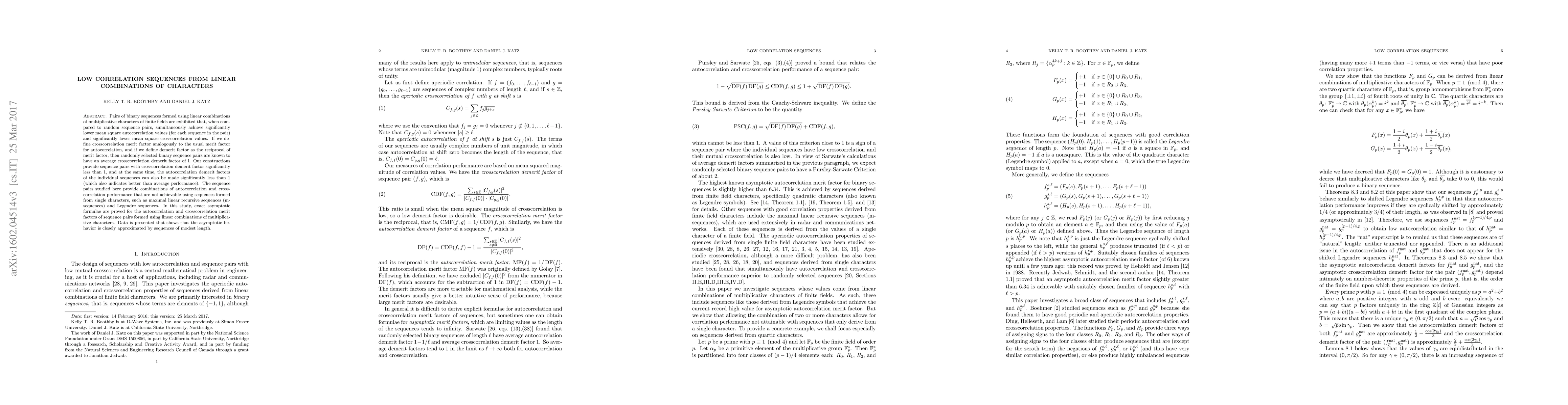 This paper presents binary sequence pairs constructed from linear combinations of multiplicative characters in finite fields that exhibit significantly lower mean square autocorrelation and crosscorrelation values compared to random sequences. The study proves exact asymptotic formulae for these merit factors and demonstrates superior performance over single-character sequences.