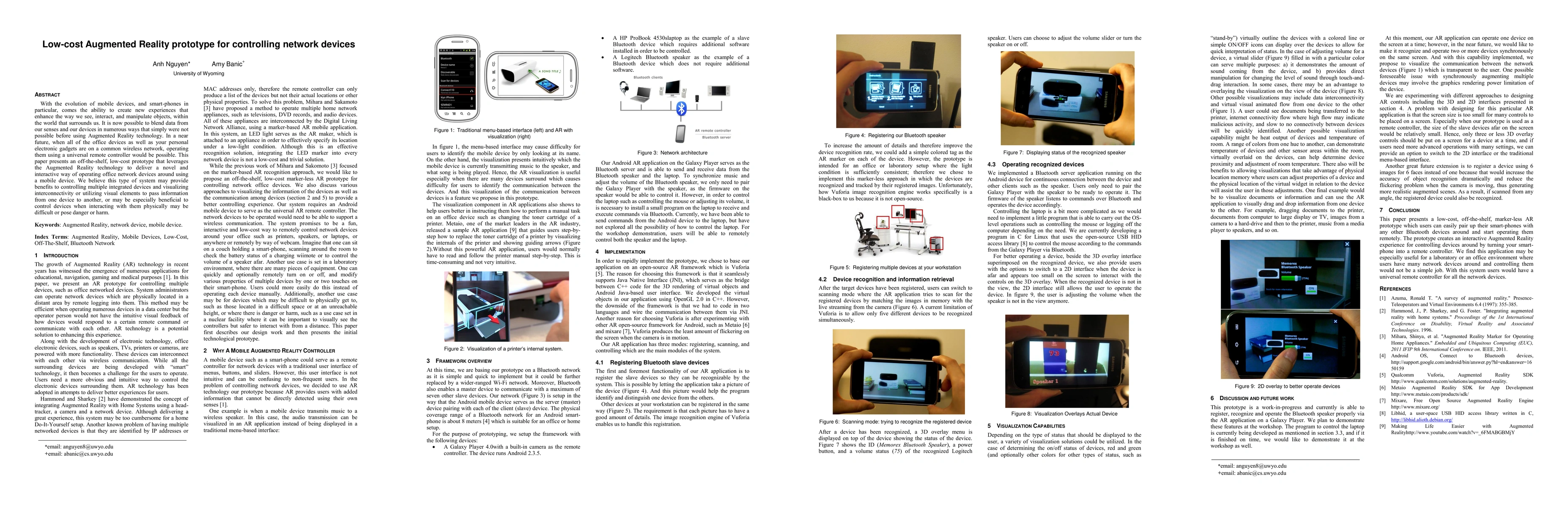 This paper introduces a low-cost Augmented Reality prototype that uses mobile devices to interactively control network devices in an office setting. The system aims to enhance device interconnectivity and safety by providing a visual interface for operating multiple devices, especially useful in hazardous or physically challenging scenarios.